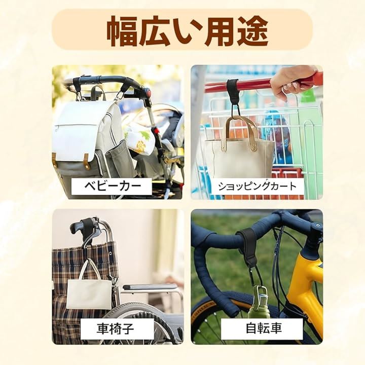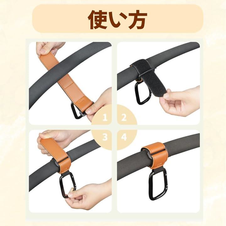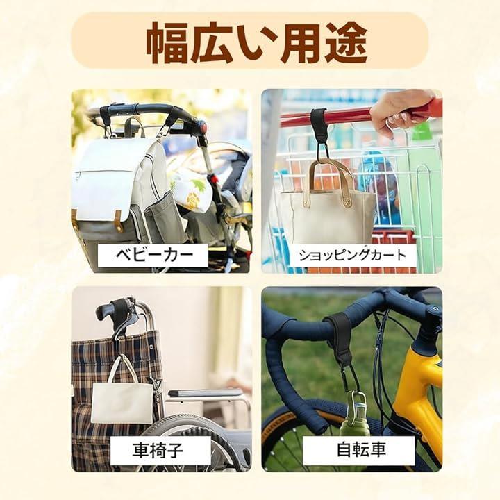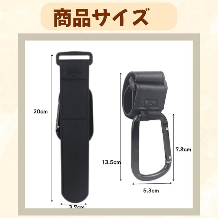 ベビーカー フック テープ カラビナ バギーフック ベビーカーフック レザー カラビナフック エアバギー ペットカート 荷物掛け 2個セット