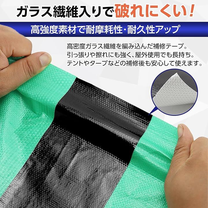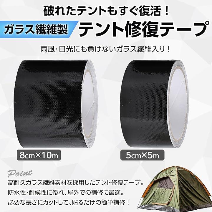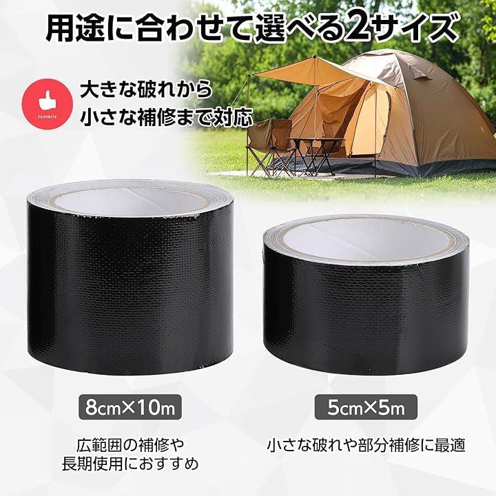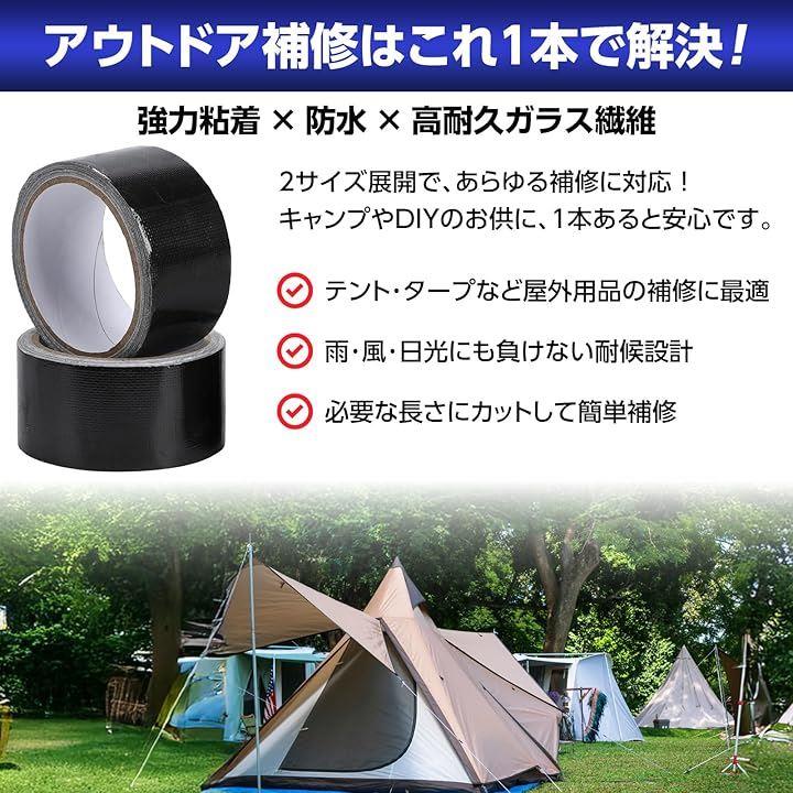 「テント補修テープ ブラック」は、防水性・耐久性に優れた強粘着タイプの補修テープです。