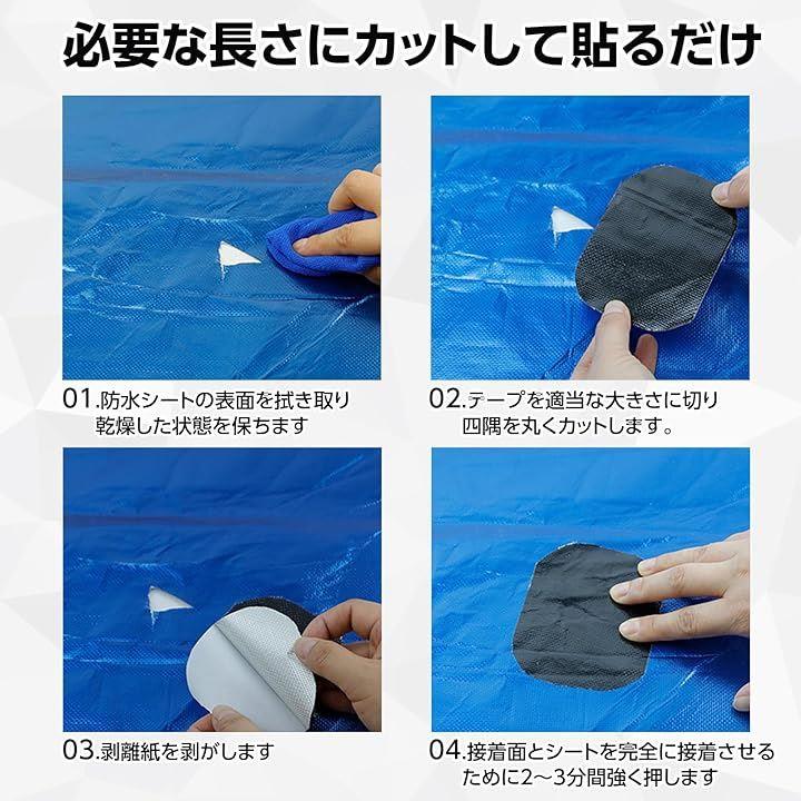 「sea grip」 テント補修テープ 強力防水 粘着テープ 屋外対応 裂け防止 黒 修理シール |