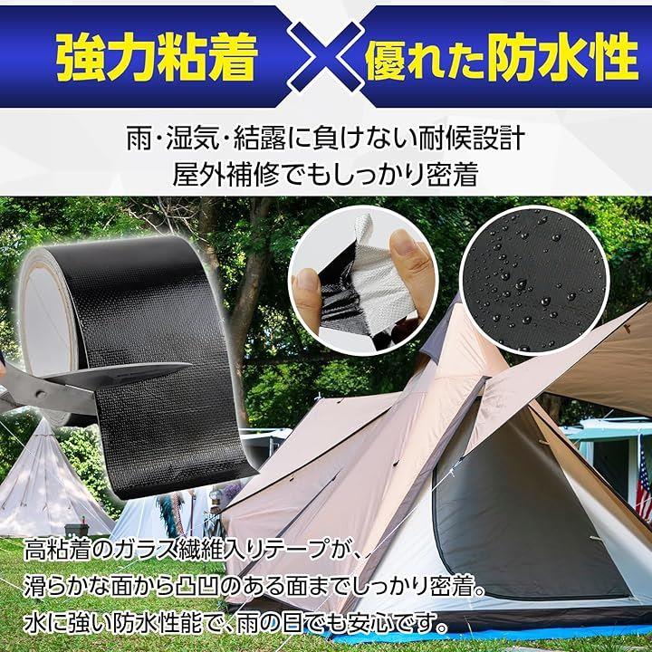 「テント補修テープ ブラック」防水・強粘着・高耐久。アウトドアや災害対策にも最適な補修アイテム