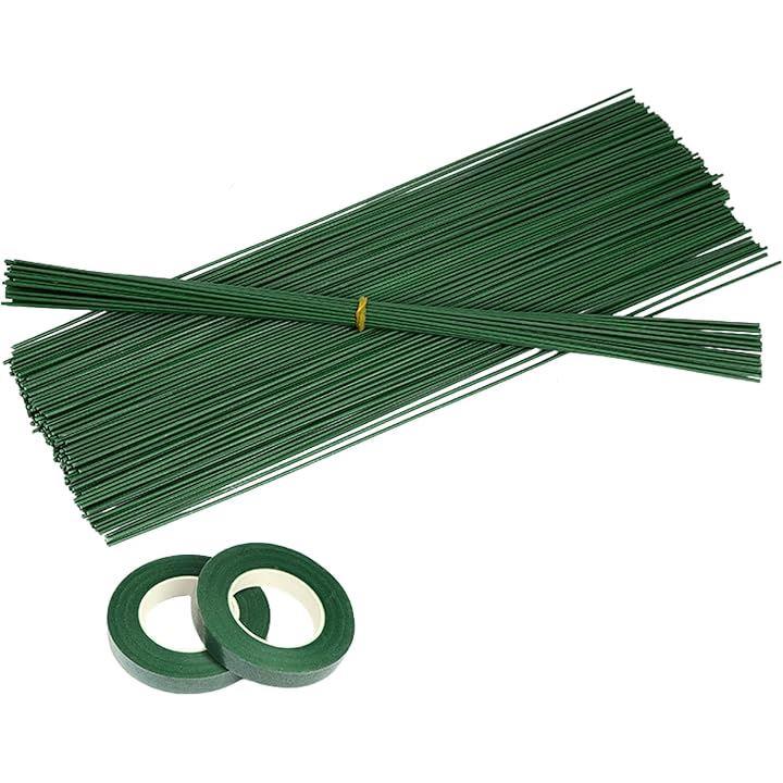 造花セット フローラテープ 2巻入 地巻ワイヤー 50本入 ダークグリーン 造花テープ 手芸 DIY