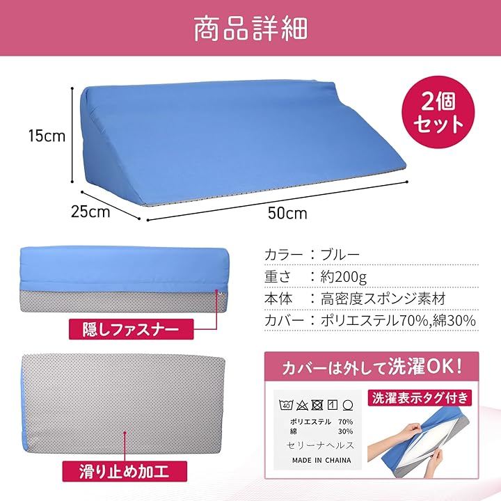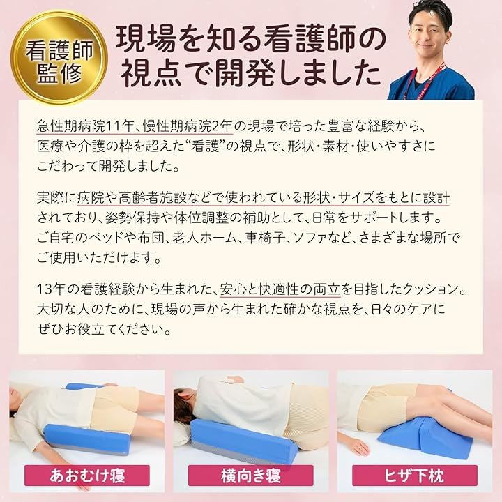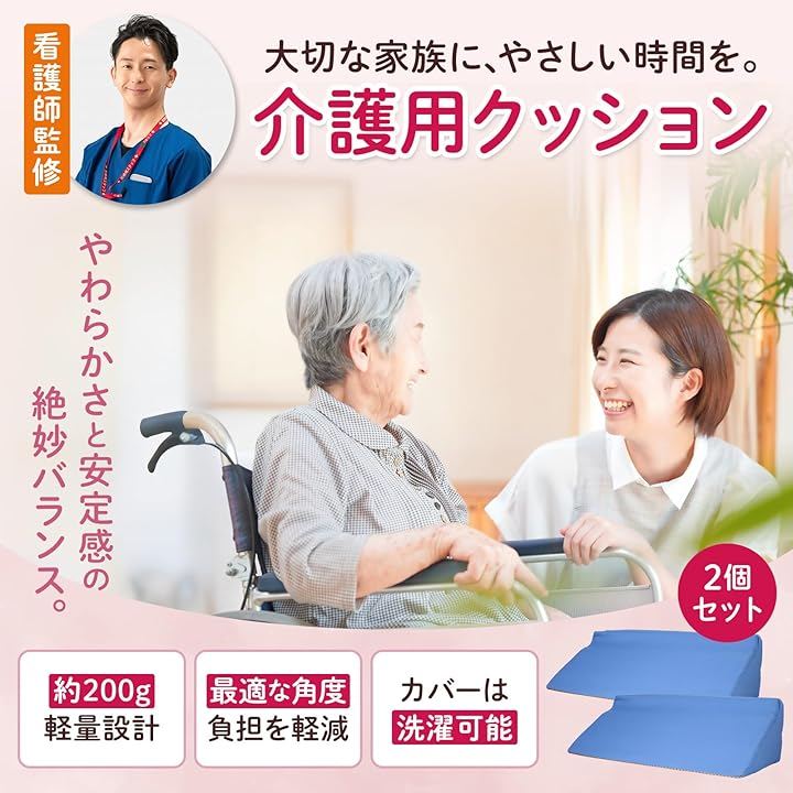 滑り止め加工でずれない 防止クッション 介護用 三角 看護師開発2個セット 軽量 洗濯可能