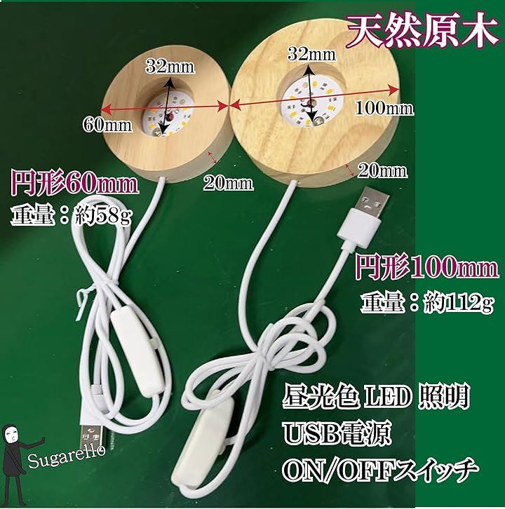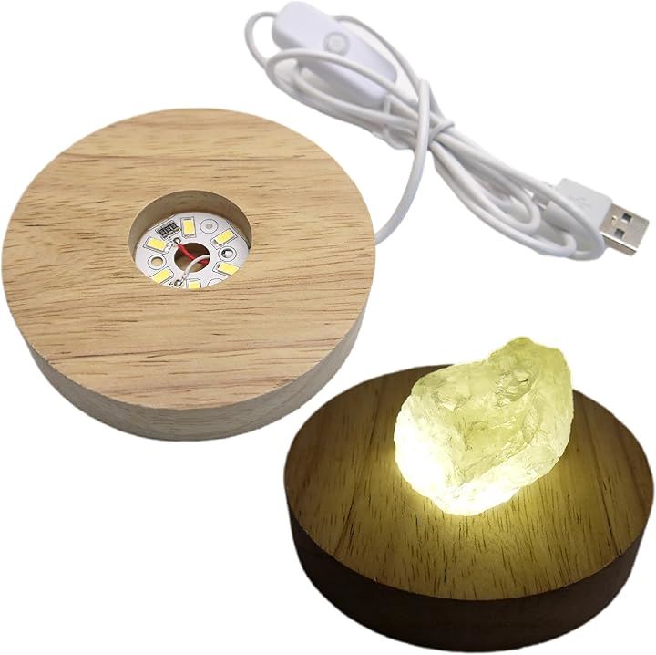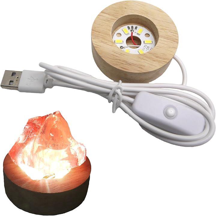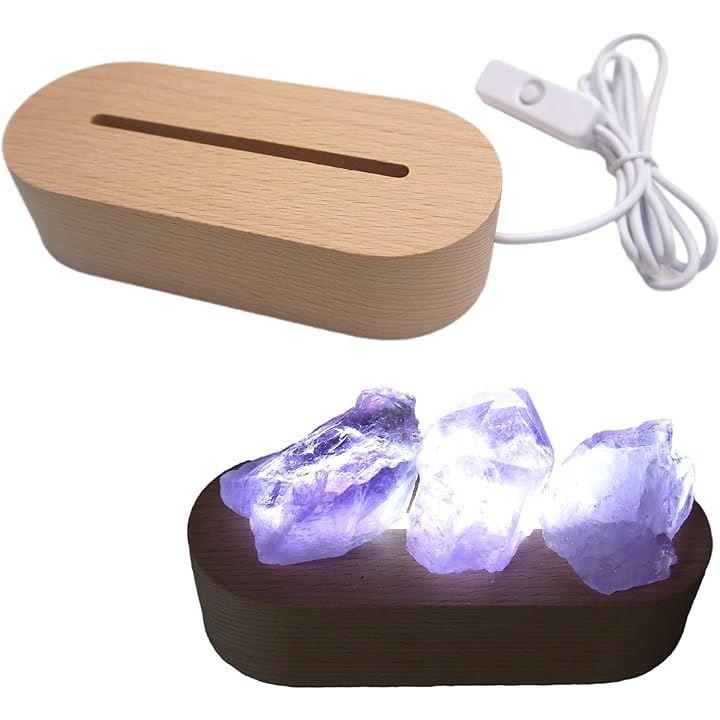 LEDライトディスプレイ 鉱石展示 水晶ディスプレイ 蛍石ディスプレ 木製 原石ディスプレイ USB式 光る台座 ディスプレイライト 昼光色