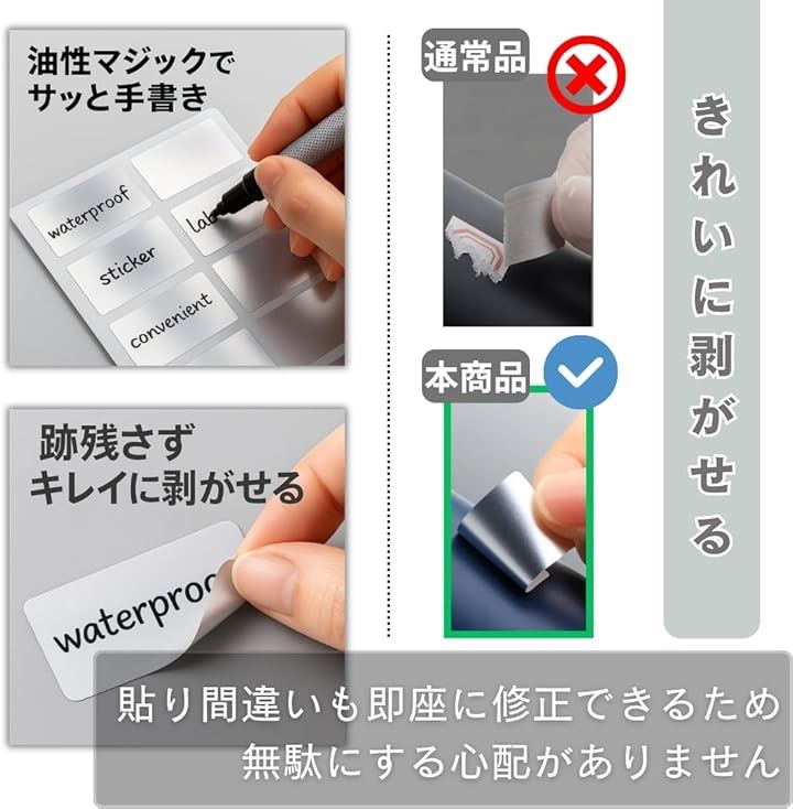 ラベルシール 防水 手書き 収納 仕分け 付箋メモ 超耐水 きれいにはがせる 10枚セット