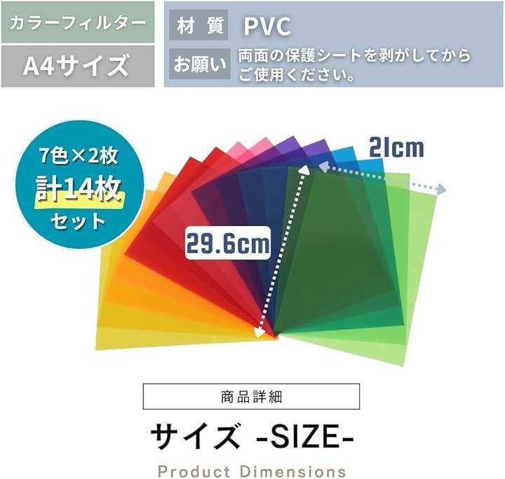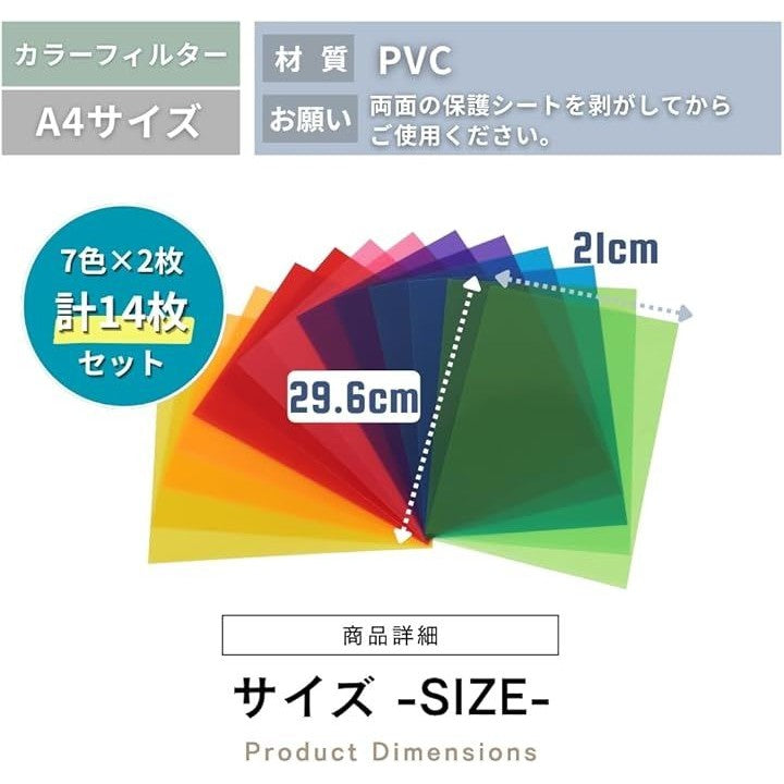 カラーフィルター 14枚セット 7色補正ジェルライトフィルター PVCジェル照明フィルター