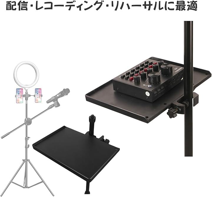 マイクスタンド用トレー 小物置き アクセサリートレイ 楽器・配信機材・飲み物収納対応 配信・ライブ・レコーディング
