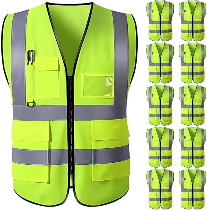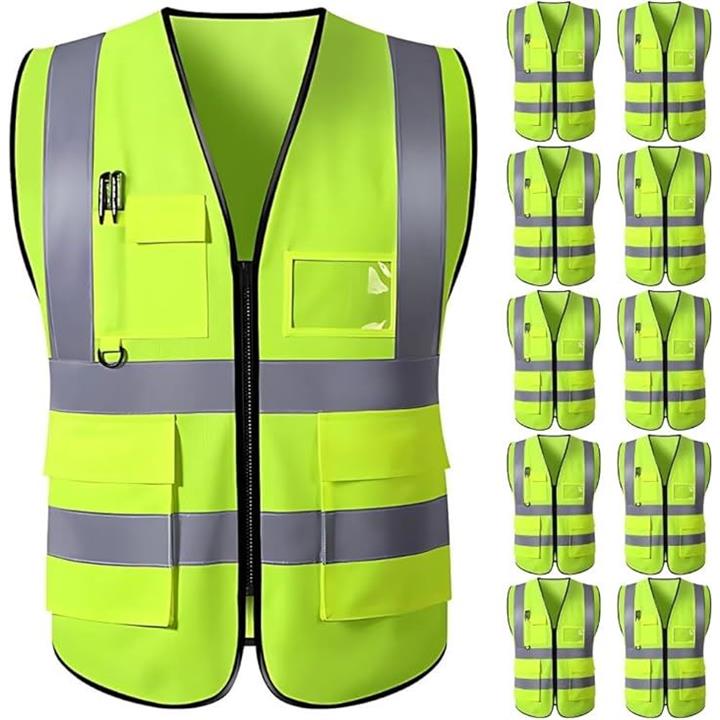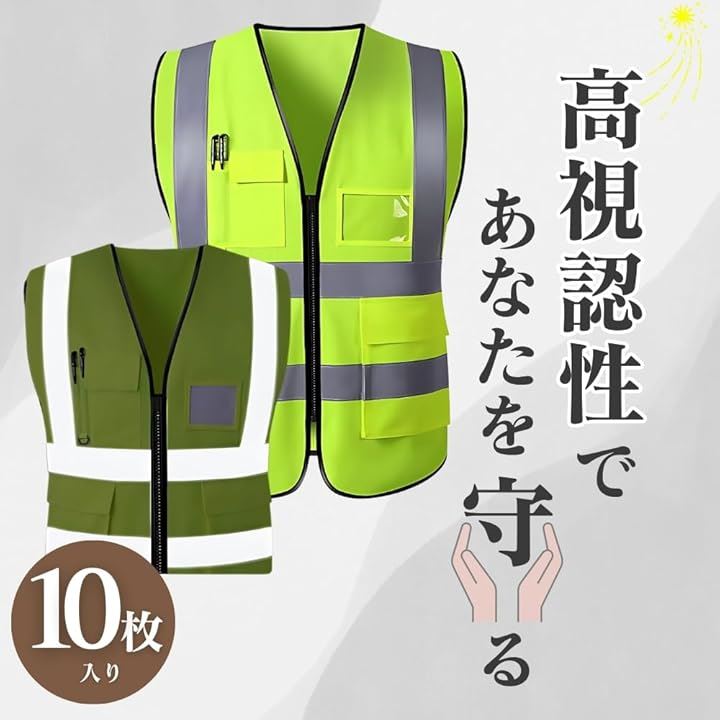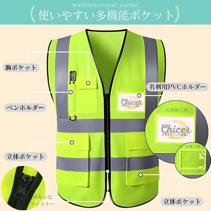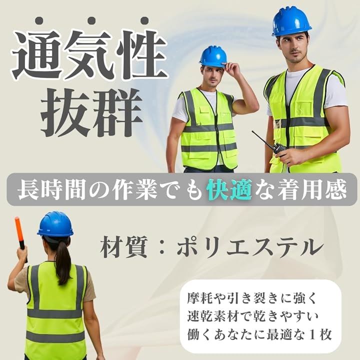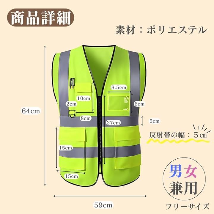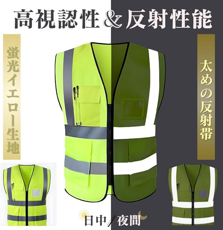 安全ベスト 反射ベスト 高視認性 蛍光イエロー フリーサイズ 男女兼用 メッシュ素材 多ポケット