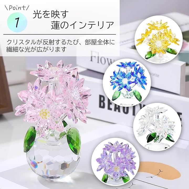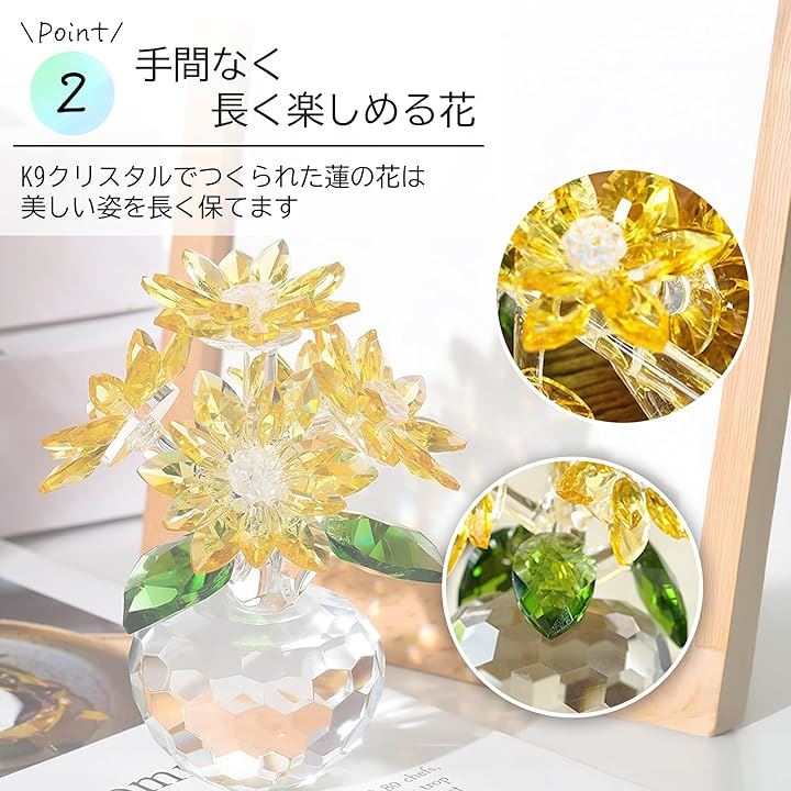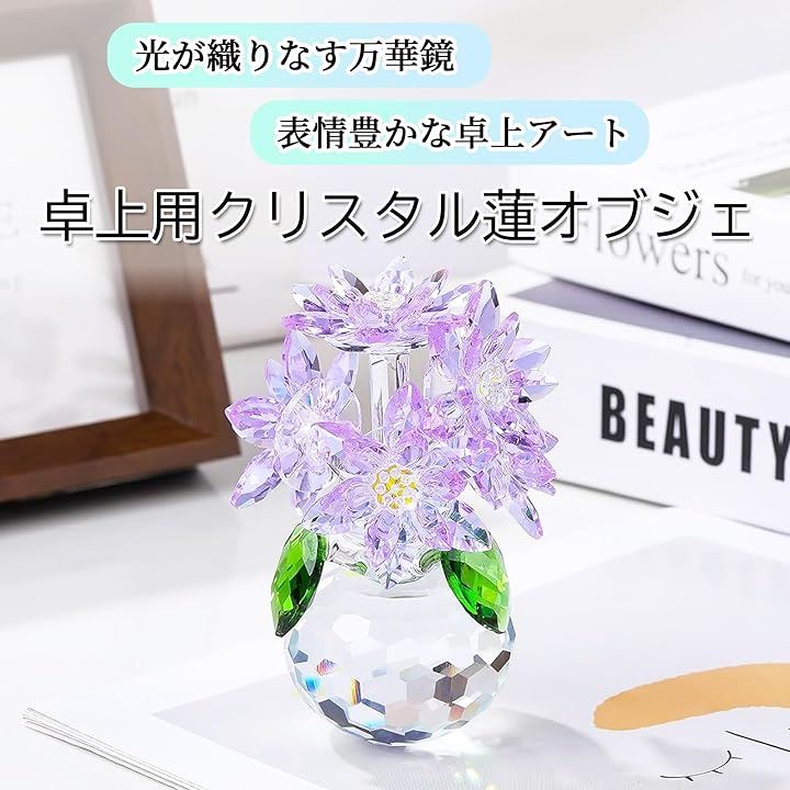 クリスタル 蓮 花 オブジェ 枯れない花 造花 室内飾り ギフト 誕生日 母の日 卓上置物 フラワーインテリア お祝い 贈り物 リビング装飾 透明感 K9素材