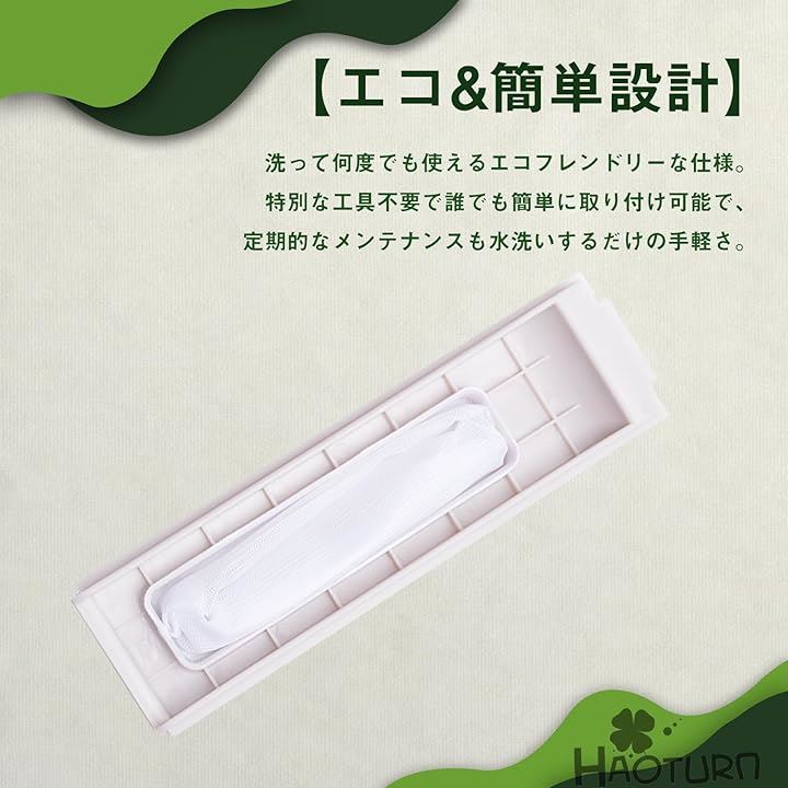 特別な工具不要で誰でも簡単に取り付け可能で、定期的なメンテナンスも水洗いするだけの手軽さ。