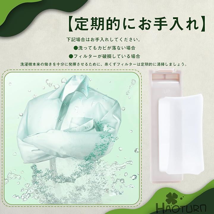 「洗濯機保護機能」洗濯物に付着した糸くずや毛髪を効果的に除去することで、ドラム内部や排水システムへの負担を軽減。