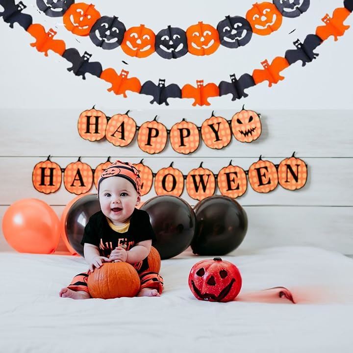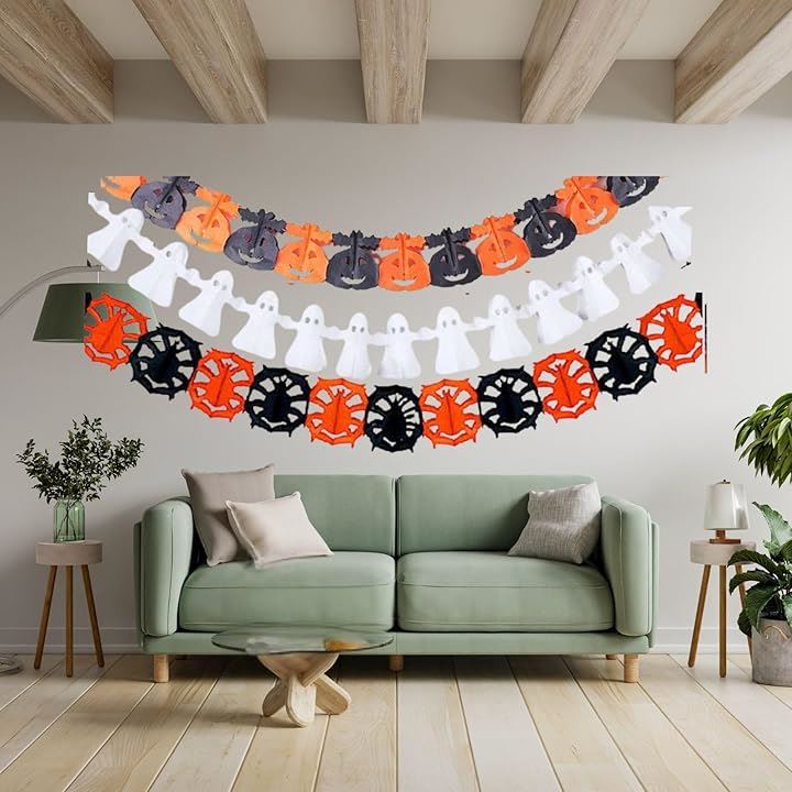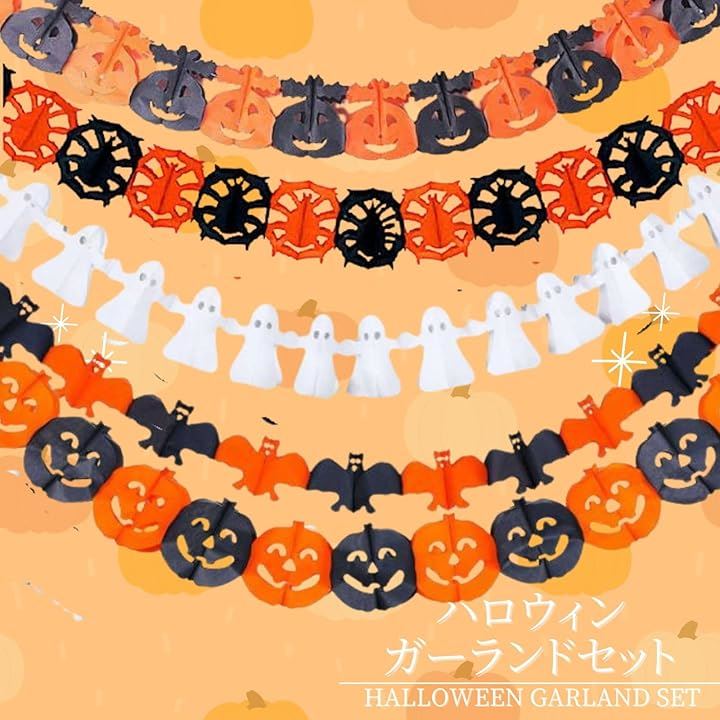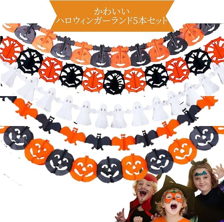 ハロウィン 飾り付け 装飾 ガーランド オレンジ 黒 かぼちゃ ゴースト a-b6138