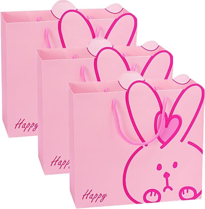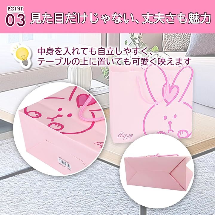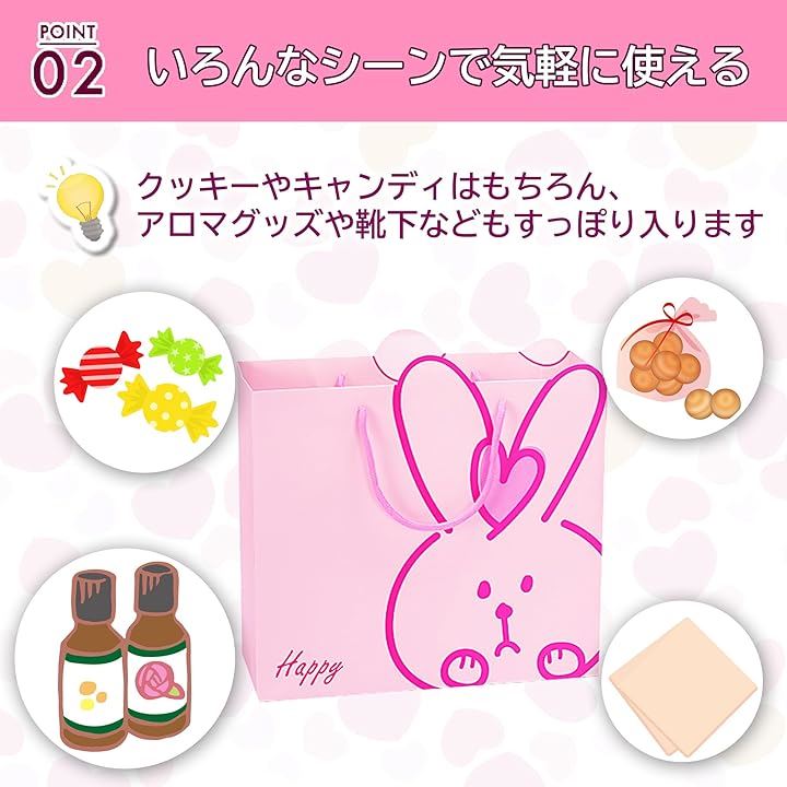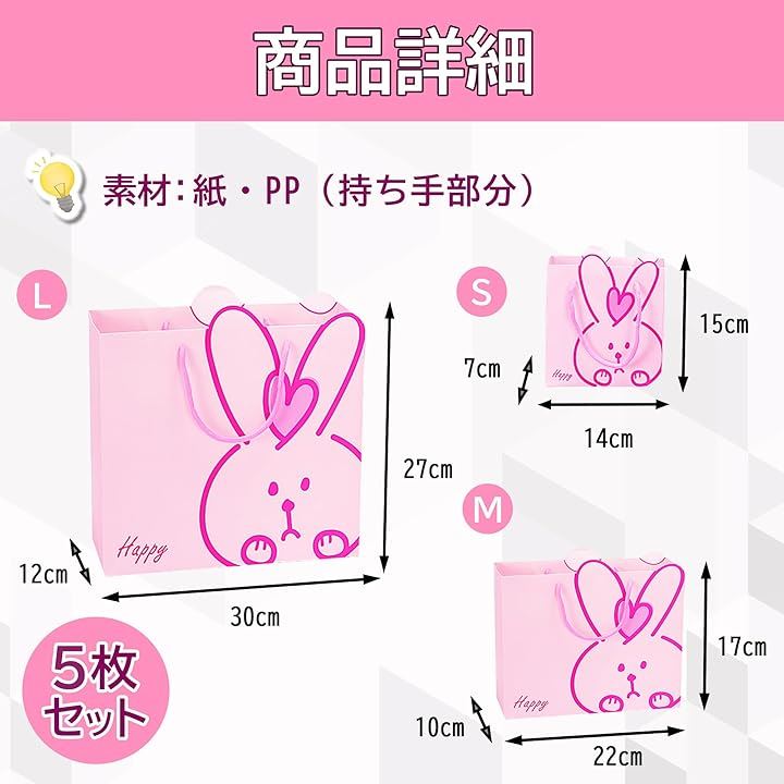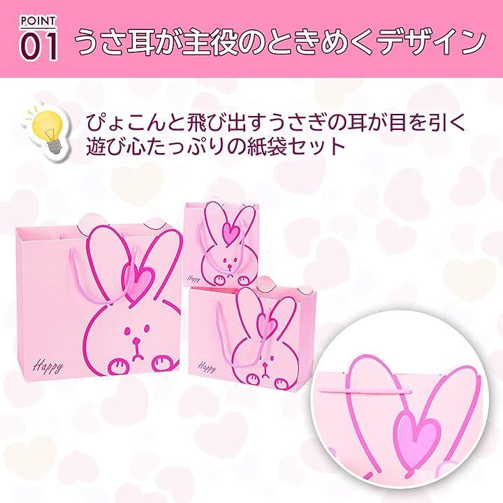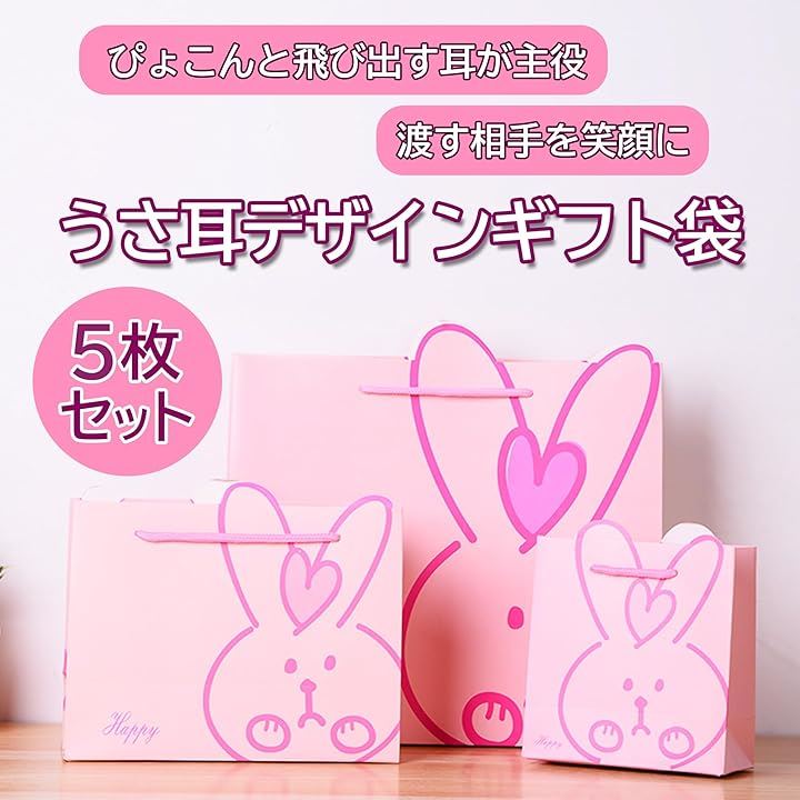 うさ耳 紙袋 手提げ袋 ギフトバッグ うさぎ 飛び出す耳 プレゼント包装 マチ広 自立型 ハート柄 ピンク レッド アニマル 小物用 5枚セット
