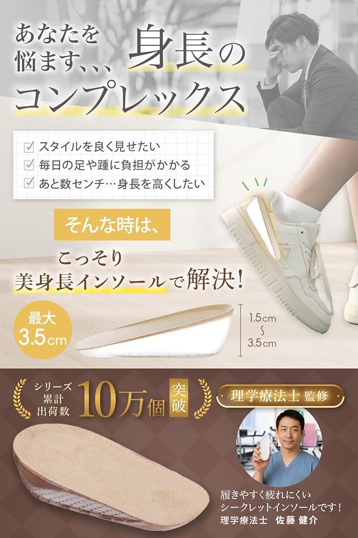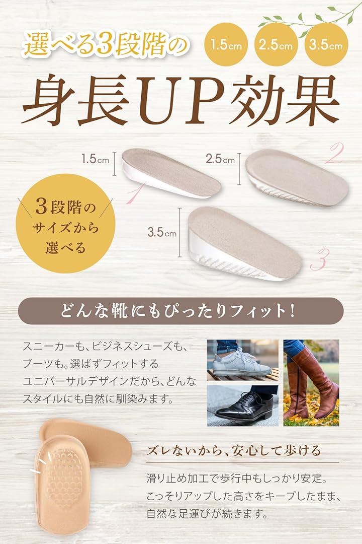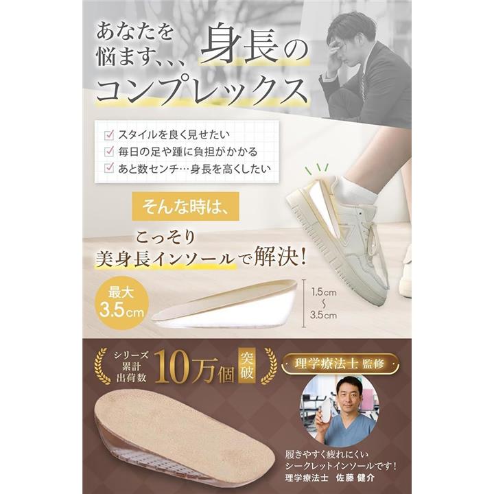 シークレットインソール かかと 身長アップ 厚底 メンズ レディース 中敷き