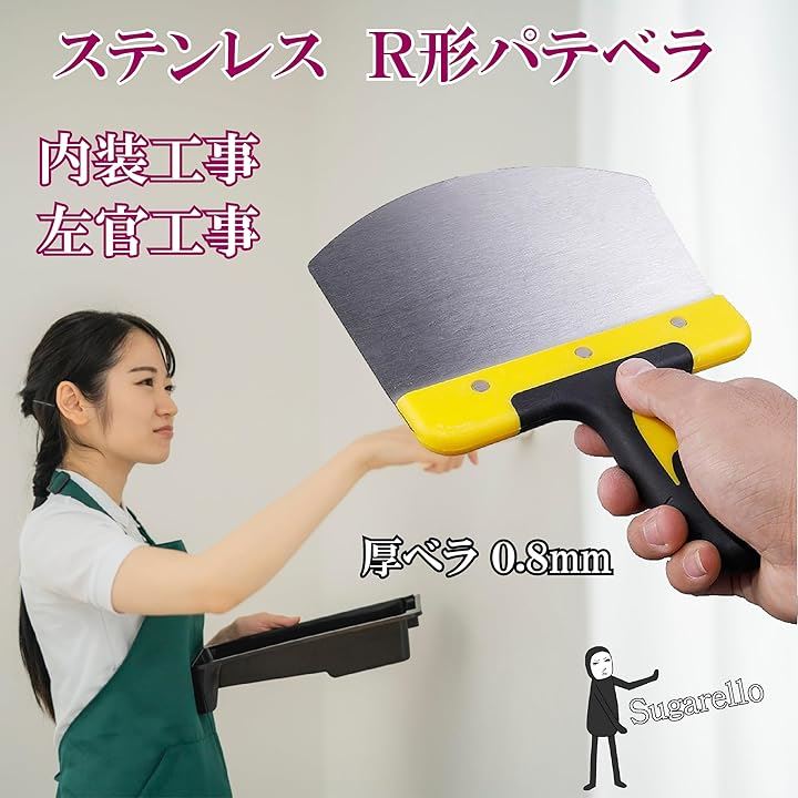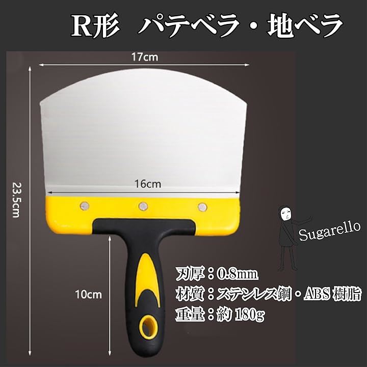 パテベラ R型 ステンレス 内装 左官 クロス貼り 幅17cm 仕上げ用工具 ステン地ベラ スクレーパー パテナイフ 金属ベラ ヘラ 壁紙 樹脂ベラセット