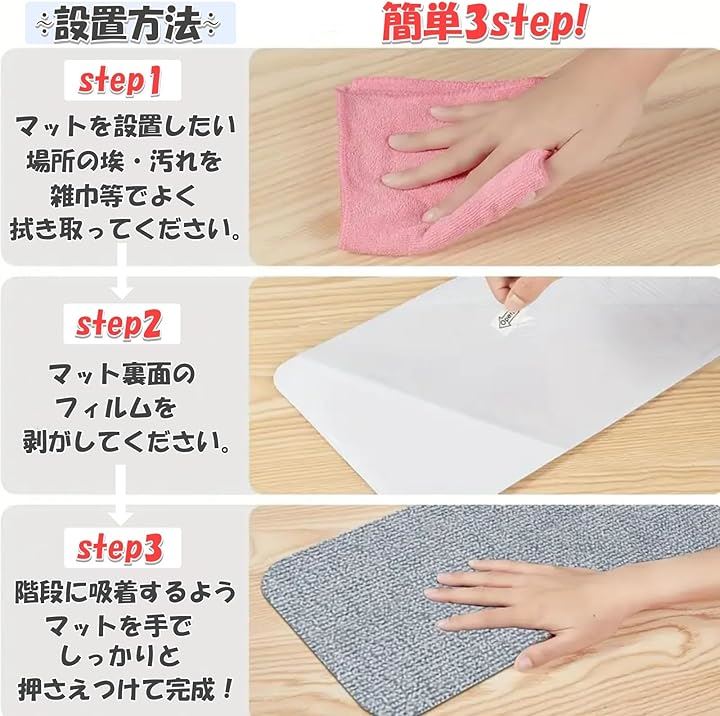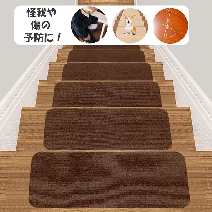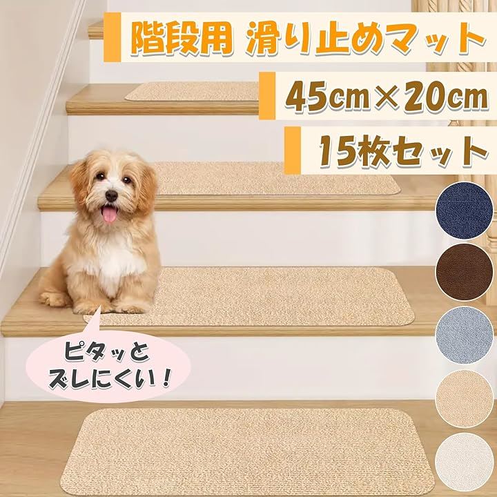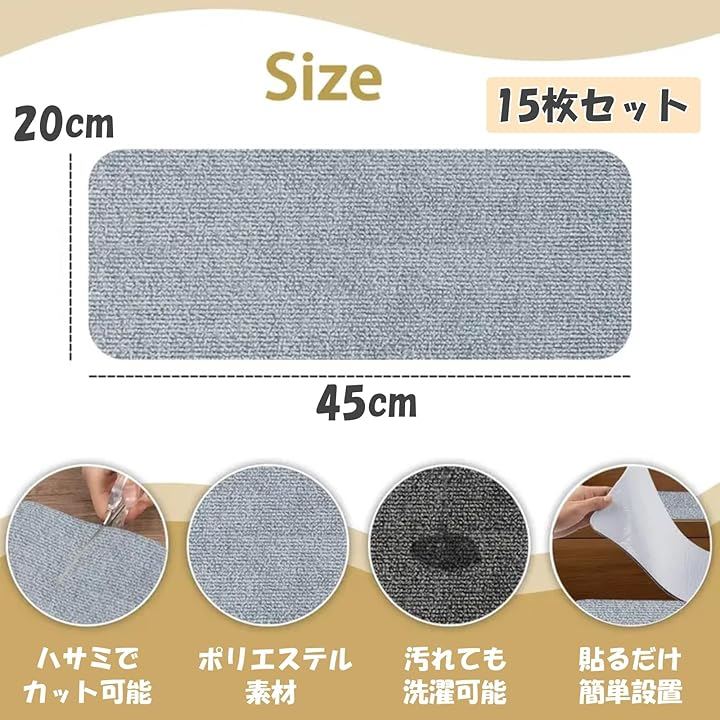 階段 滑り止めマット 15枚セット 階段用 カーペット ズレない 洗える 吸着マット 傷防止