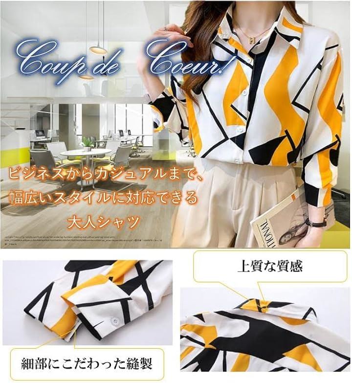 シャツ ブラウス オフィス 仕事着 カジュアル 柄 キレイ目 大きめ トップス 長袖 襟 柔らかい かわいい おしゃれ 総柄 インナー カジュアルシャツ