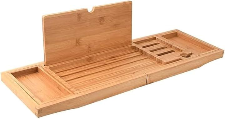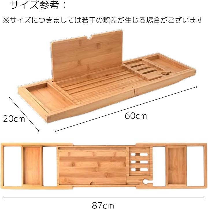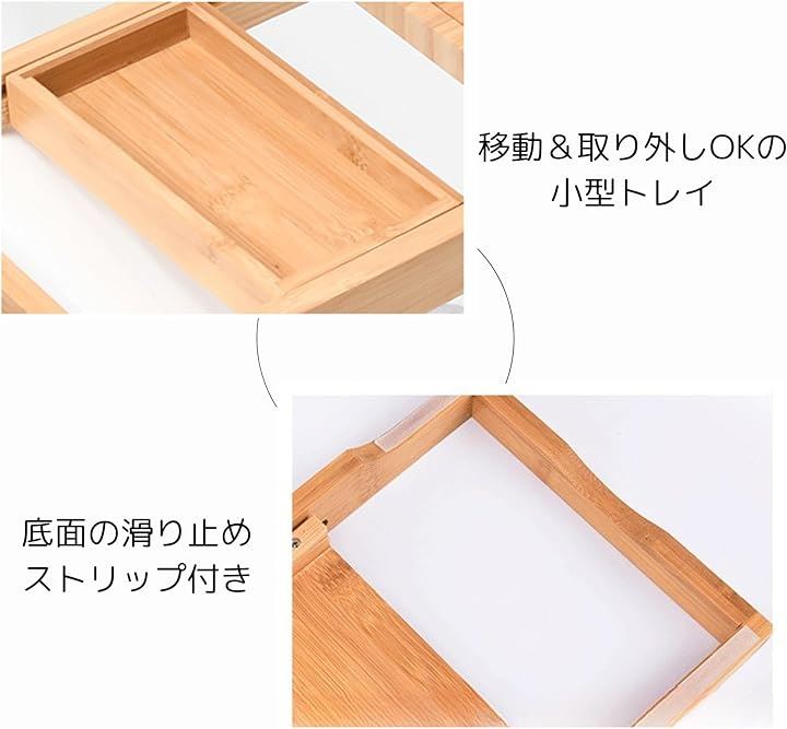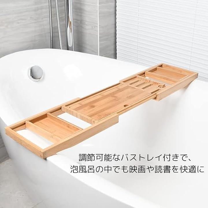 木製バスタブラック バスルームシェルフ トレイ収納 浴槽ラックボード 調節可能 バスシェルフテーブル バスルームオーガナイザー ホームスパ