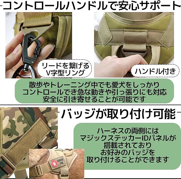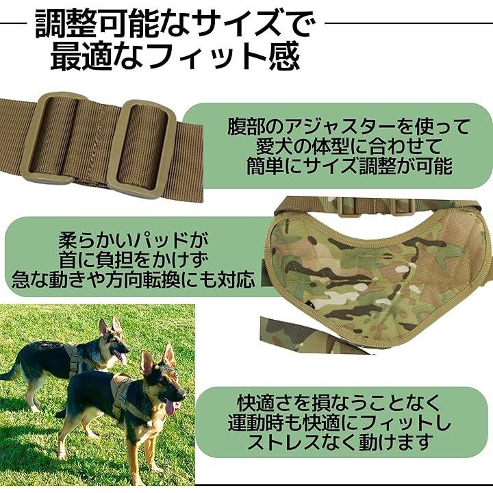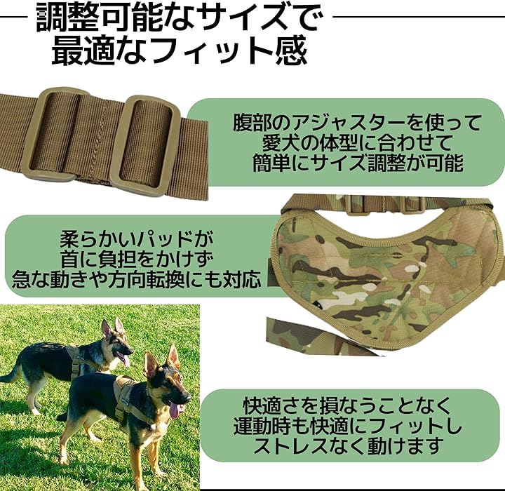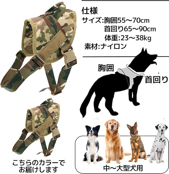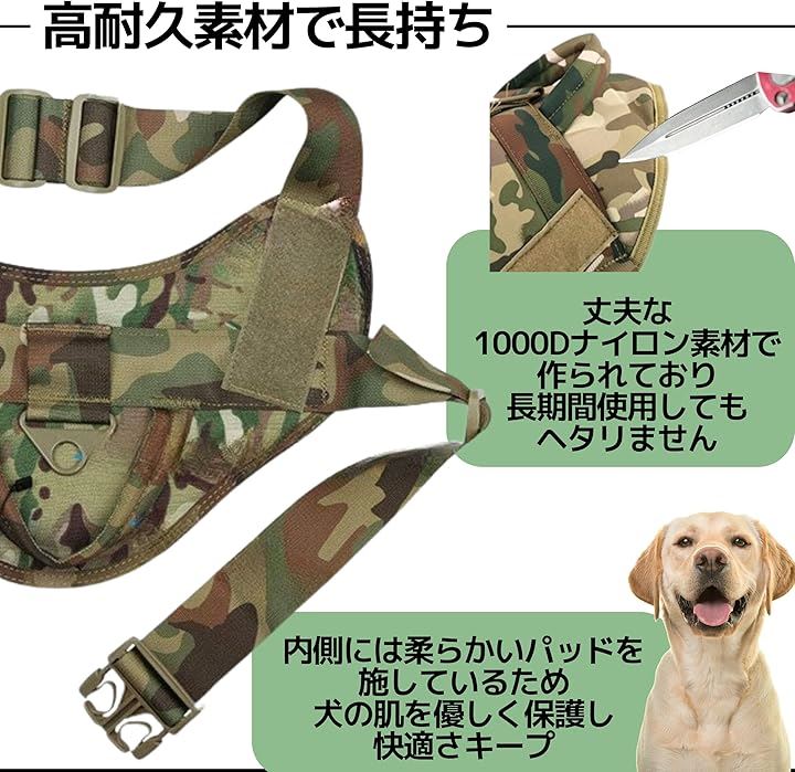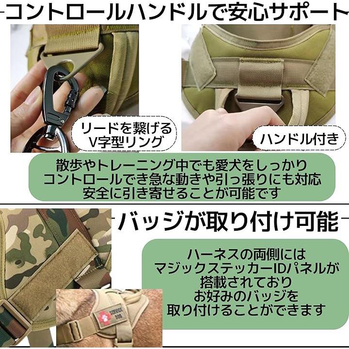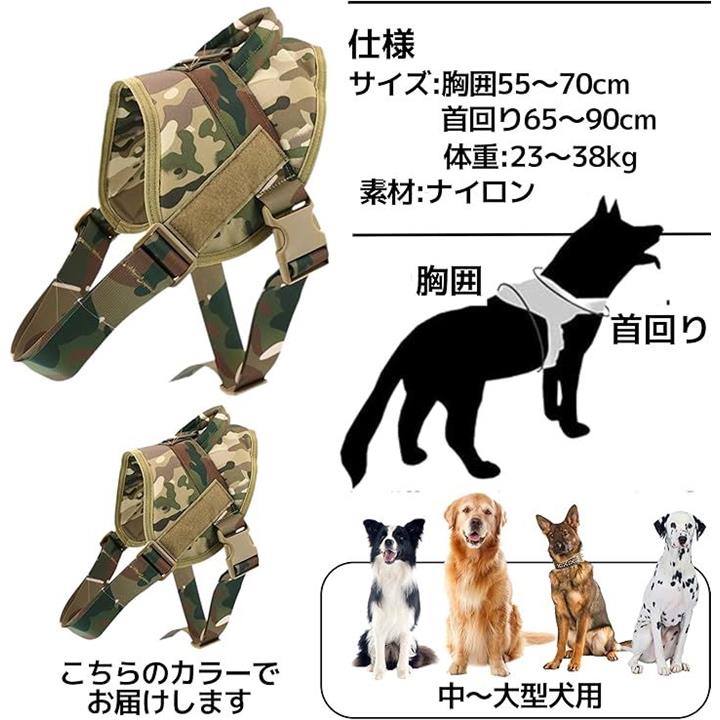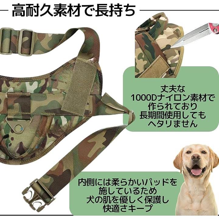 ハーネス 犬 小型犬 中型犬 引っ張り防止 ハンドル おしゃれ 着脱簡単 防水 高強度 通気性 ナイロン製 迷彩 Lサイズ