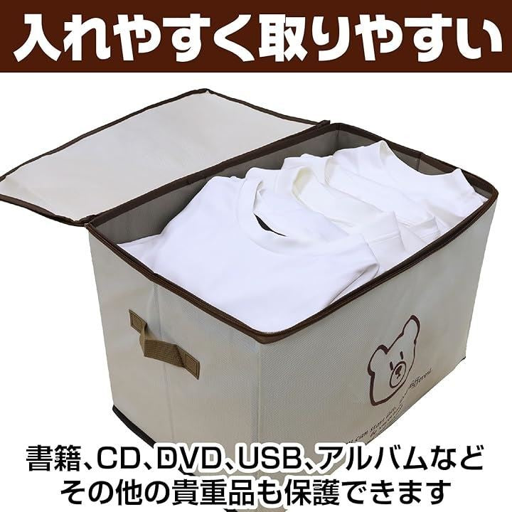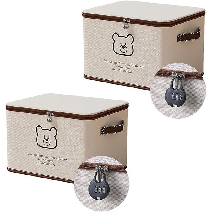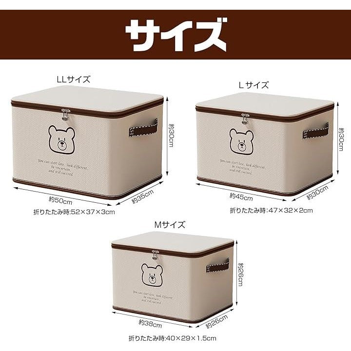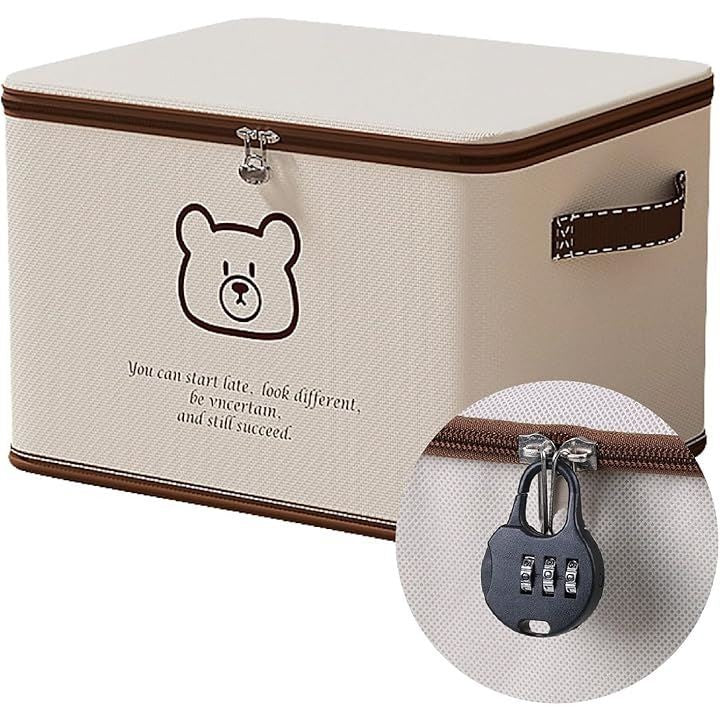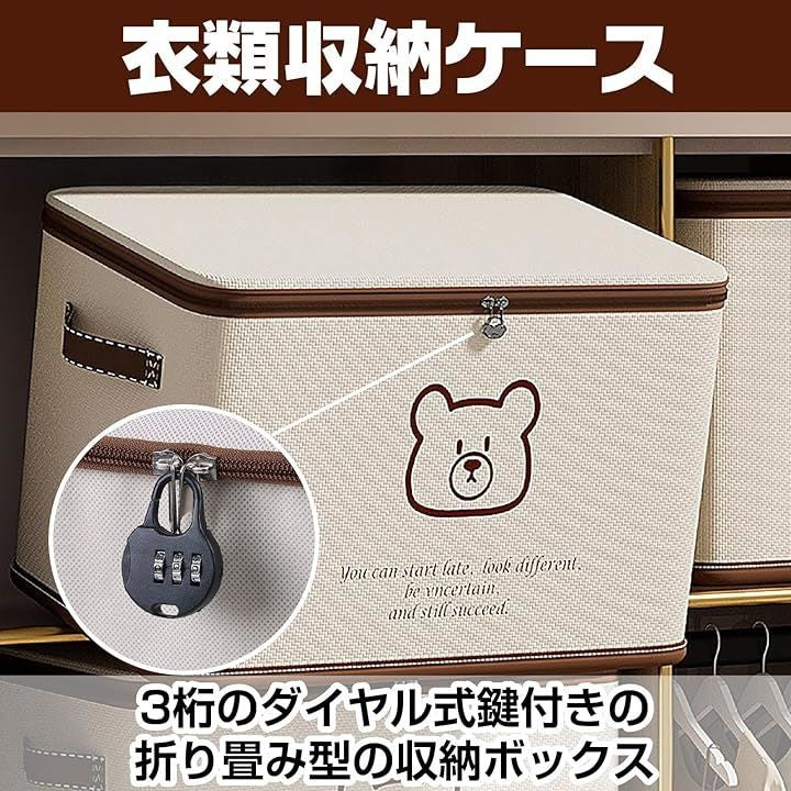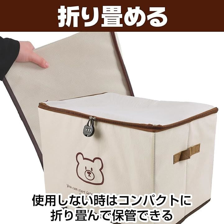 鍵付き 収納ケース 収納ボックス ダイヤル錠 折りたたみ 大容量 片付け 衣類 くまさん 布製 ファスナー