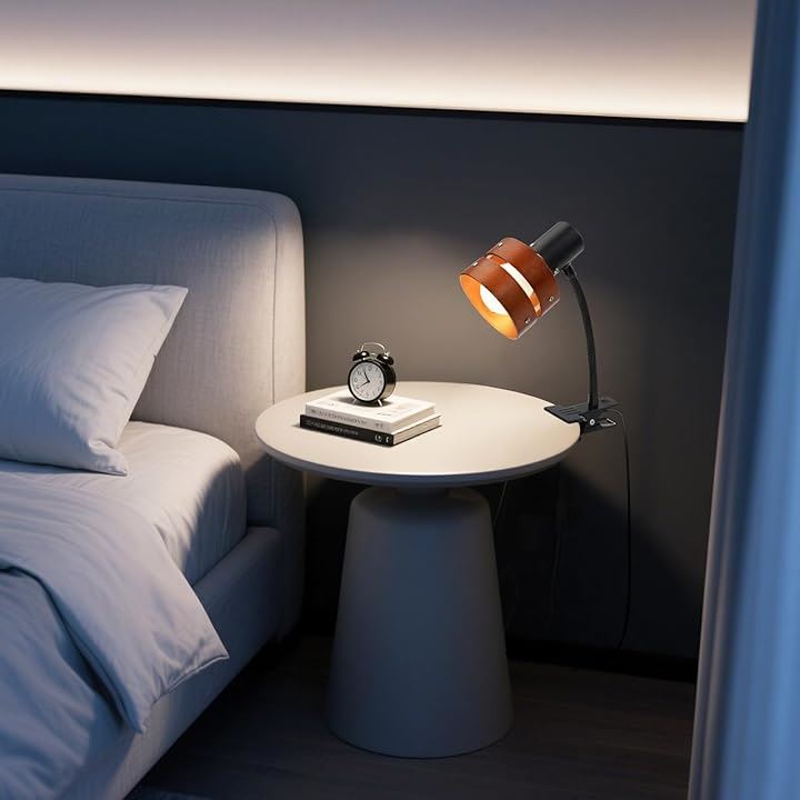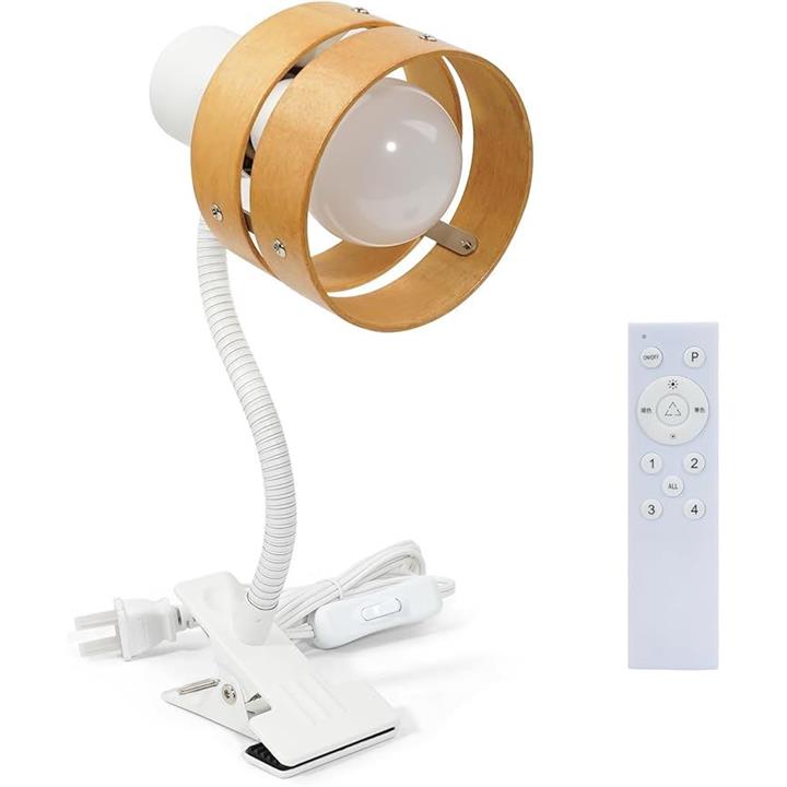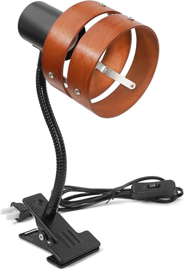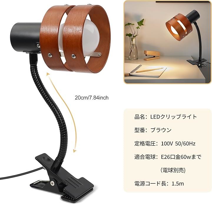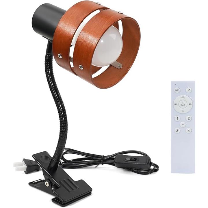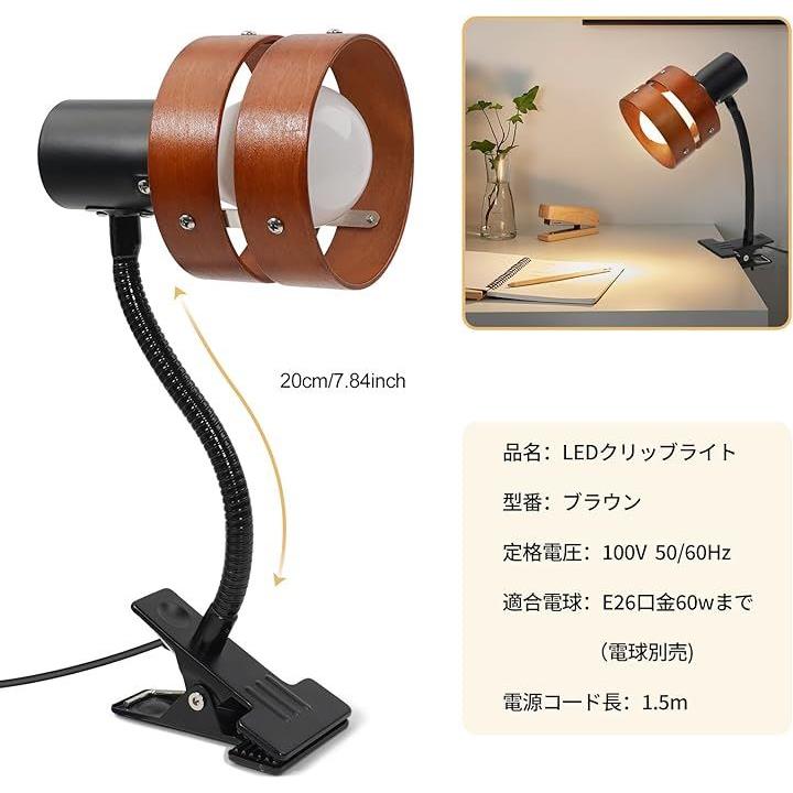 クリップライト 茶色の木製の円 E26対応 360度回転 スイッチ付き 高級 目に優しい 節電 省スペース設計 寝室 ベッドサイド デスクライト 読書用 高級レストラン照明 植物育成ライト対応