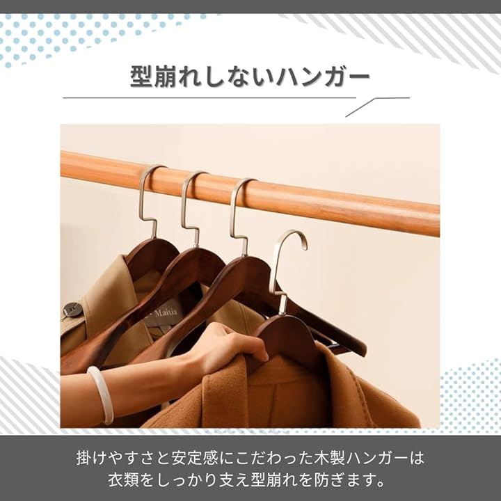 木製ハンガー 型崩れしない 掛けやすい 5本セット