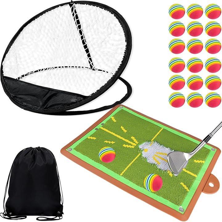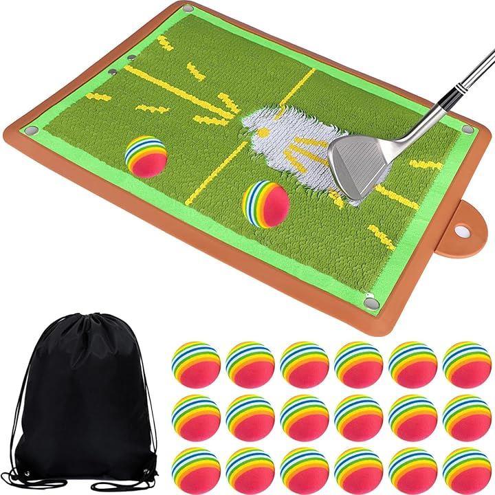 ゴルフ練習マット アプローチ練習器具 室内 トレーニング 芝風マット EVAボール 20個 収納袋付き
