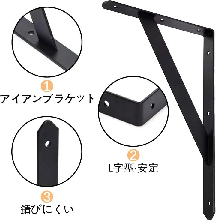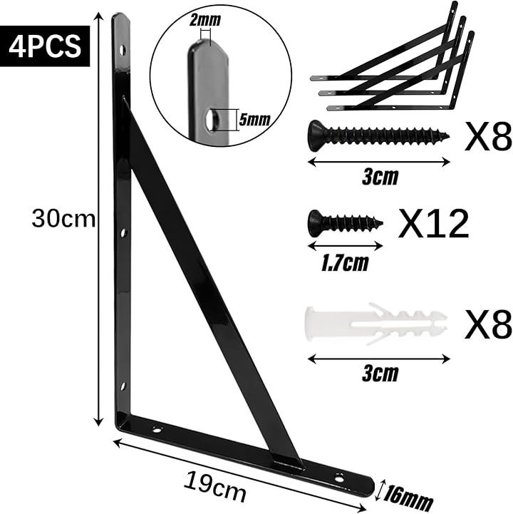 棚受け 金具 L字型 4本セット 壁掛け 棚うけ アングルブラケット L型棚受け金具 壁掛け吊り棚 ビス付き 300mmx190mmx16mm