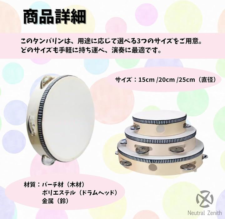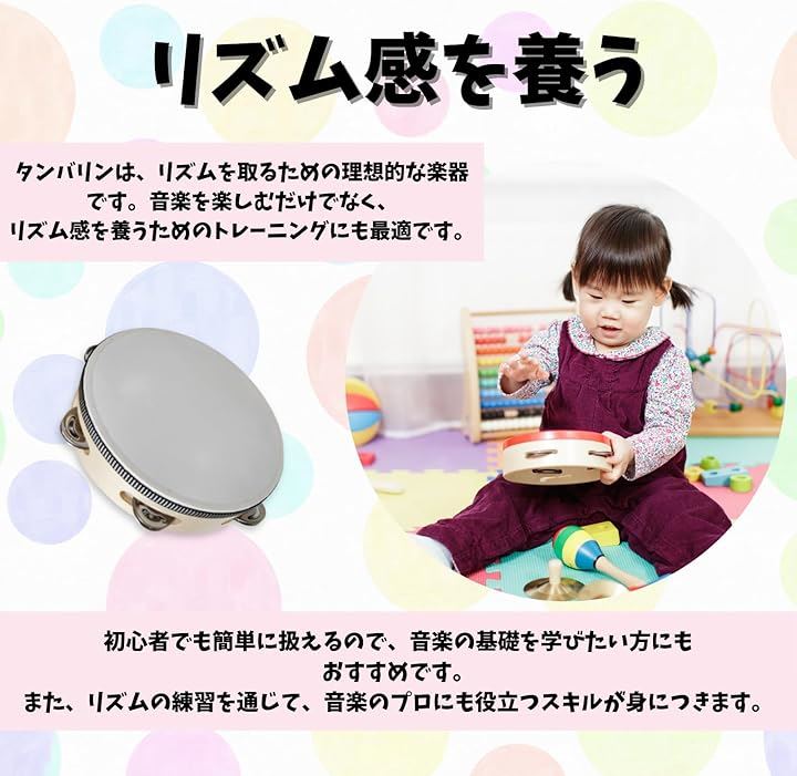タンバリン 楽器 打楽器 ダンス バレエ 木製 コンパクト 軽量 お手軽タンバリン