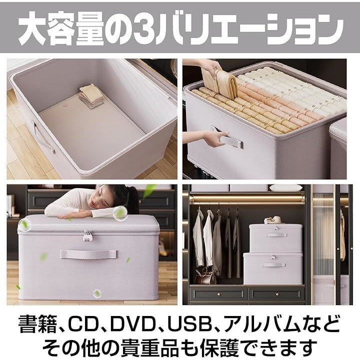 CAWKAY 鍵付き収納ボックス ダイヤル錠 収納ケース 大容量 折りたたみ 水洗いOK 衣類 収納 ふた付き おしゃれ 布製 ファスナー |