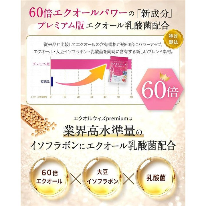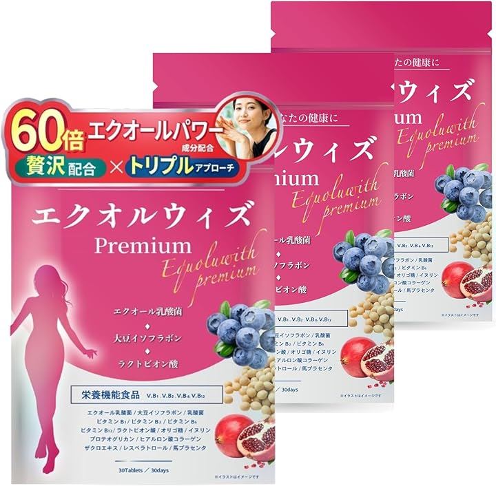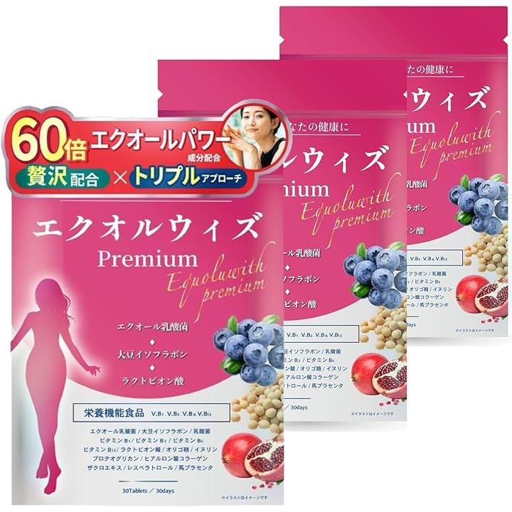 60倍エクオールパワー成分配合 エクオール サプリメント エクオルウィズpremium エクオール生成x医師監修エクオール乳酸菌xイソフラボン3袋セットx90日分 栄養機能食品 ビタミンB1・ビタミンB2・ビタミンB6・ビタミンB12 |
