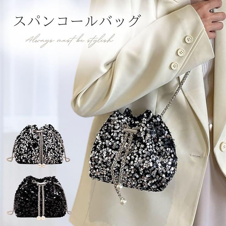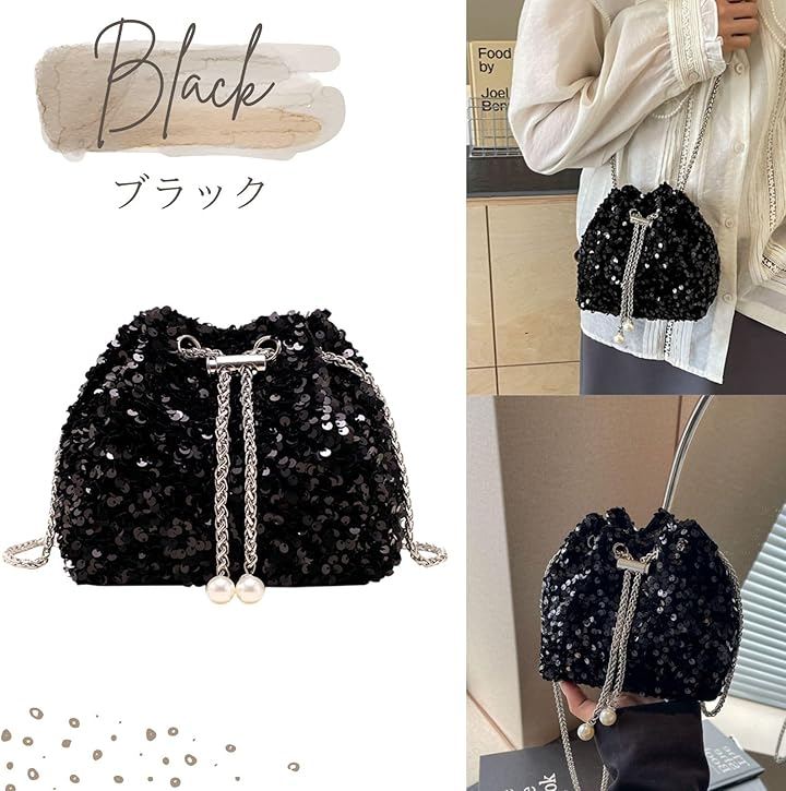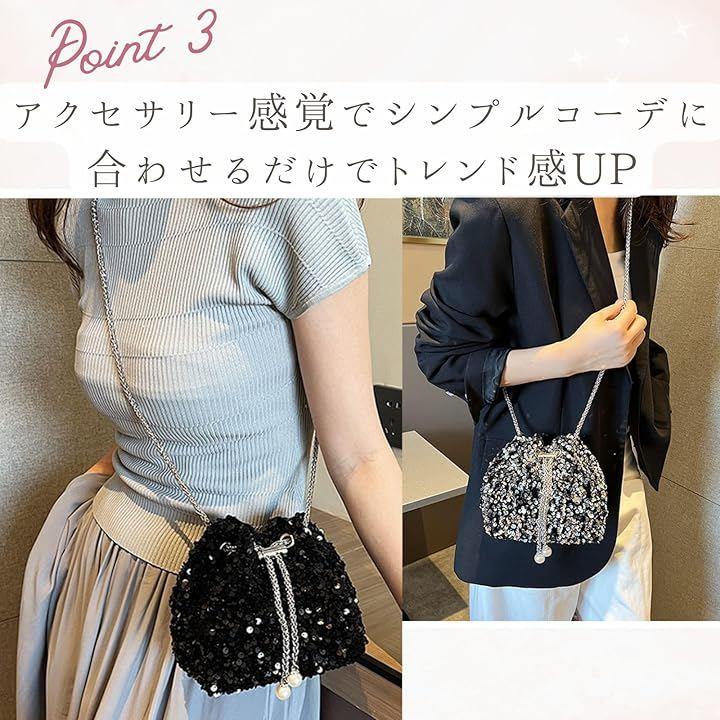 スパンコールバッグ パーティーバック レディース ショルダー ポシェット 巾着 チェーン 小さめ おしゃれ かわいい 結婚式 ドレス キラキラバッグ 肩掛け 斜めがけ