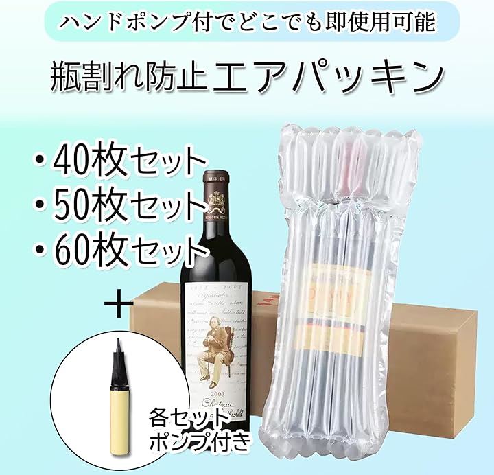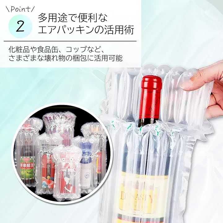 ワイン梱包 エア緩衝材 エアマッスル エアパッキン エアクッション材 衝撃吸収 保護材 ボトル保護 瓶割れ防止 エアチューブ ワイン配送 ギフト梱包