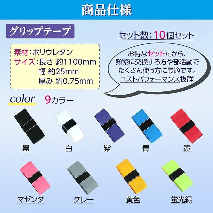grooblue グリップテープ テニス 滑り止めテープ 10本セット ラケット テニス バドミントン ゴルフ 野球 自転車 釣り竿 滑り止め スポーツ用 交換 汗対策 防水 |