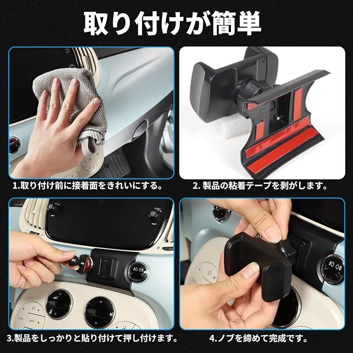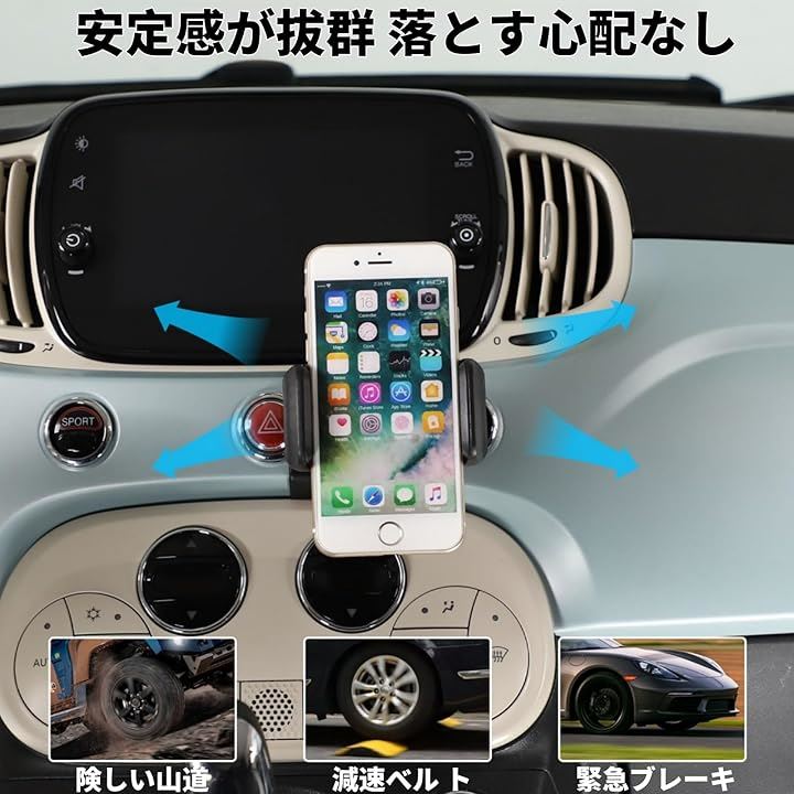 フィアット 500 2016年~現行に対応 スマホホルダー 車載ホルダー スマートフォンホルダー 携帯ホルダー 車載電話マウント 全機種対応 取り付け簡単 カー用品