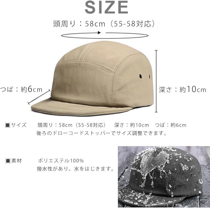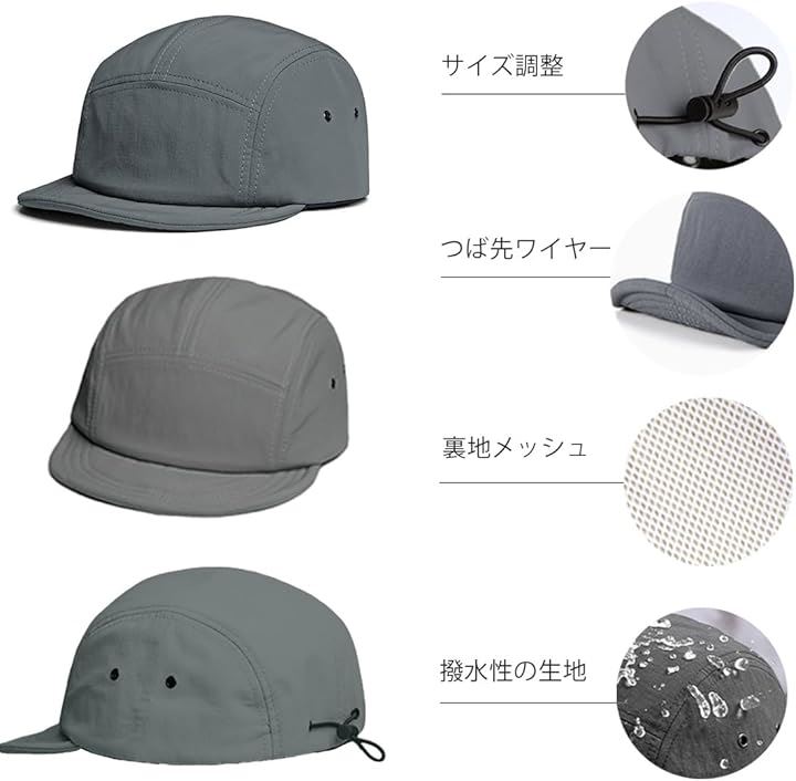 メンズ ジェットキャップ ファイブパネル ポリエステル 撥水 レディース 春 夏 秋
