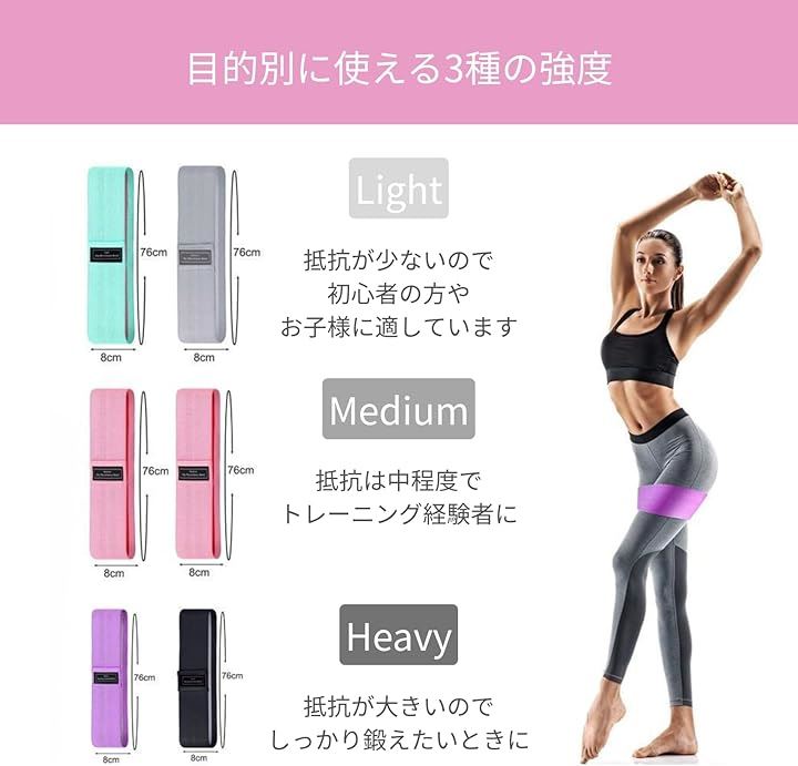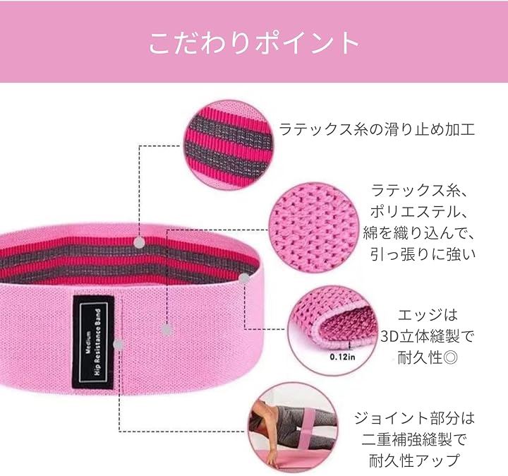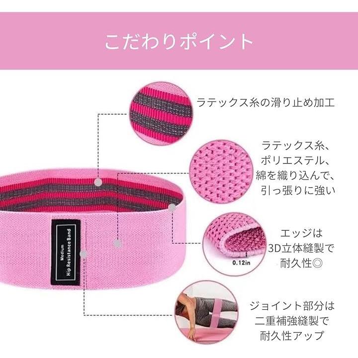 エクササイズバンド 3本セット レジスタンスバンド ストレッチバンド 内転筋 トレーニング 筋トレ ヒップバンド 美尻 フィットネス