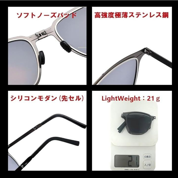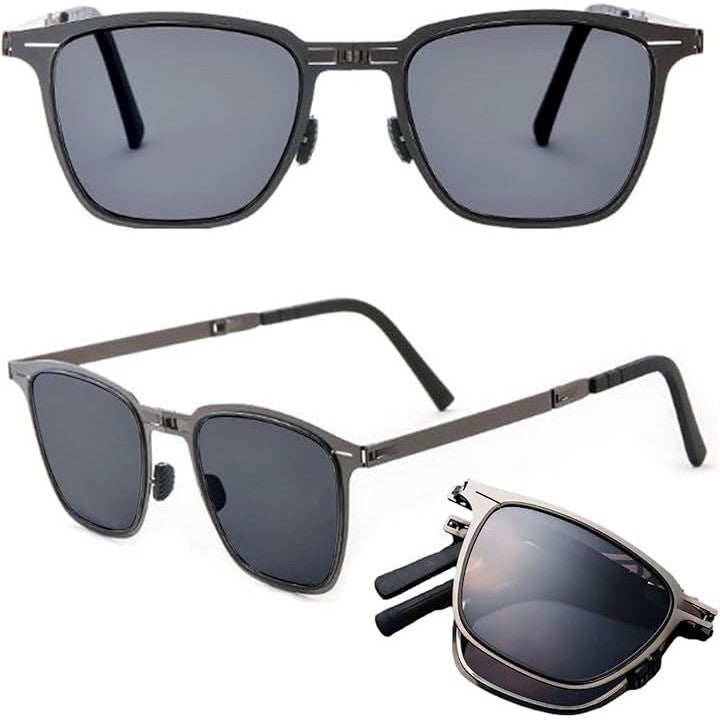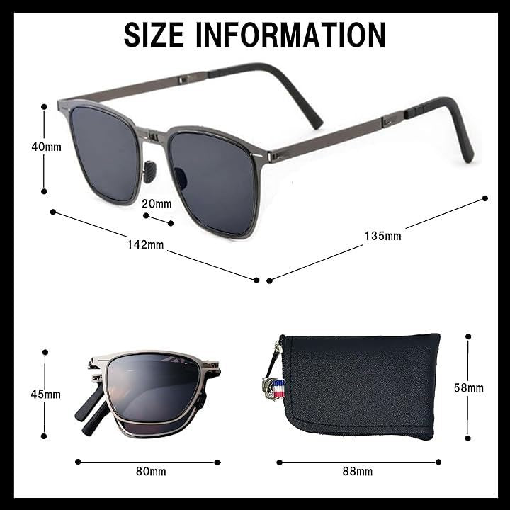 超軽量ステンレス 折りたたみ 偏光 サングラス UV400 運転 釣り レトロ メンズ スクエアサングラス 折畳ガンメタル