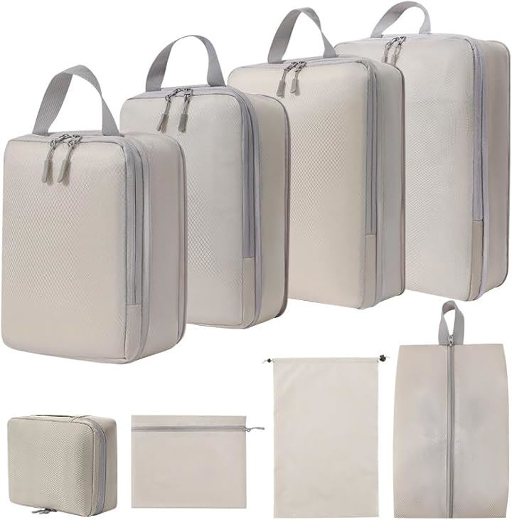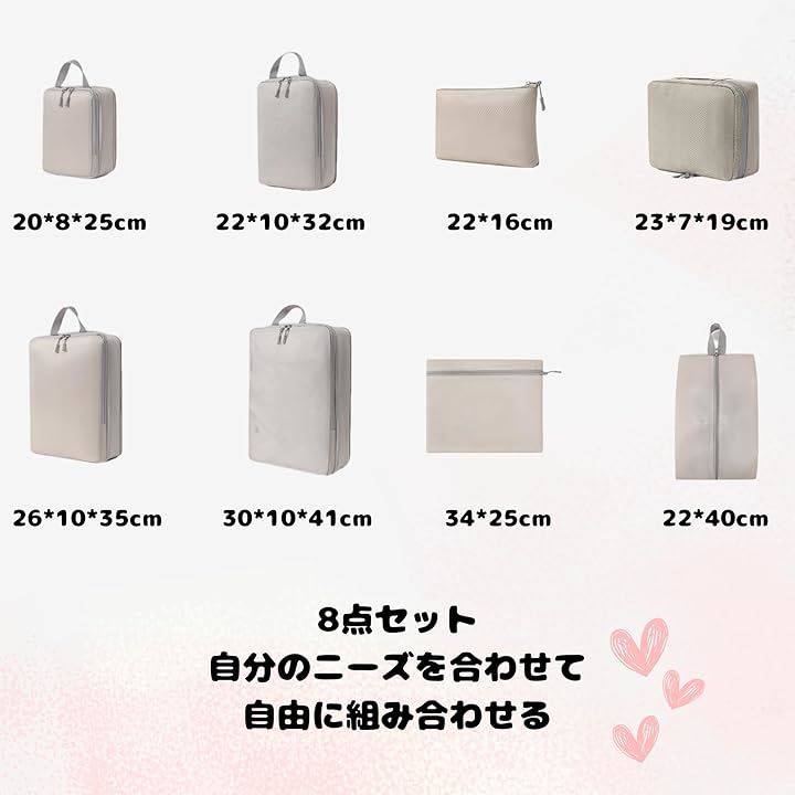 トラベルポーチ 収納ポーチ アレンジケース 8点セット 旅行用圧縮袋 パッキングポーチ 出張 整理 便利旅行圧縮バッグ 靴用 下着収納 衣類仕分け 軽量 防水 収納バッグ