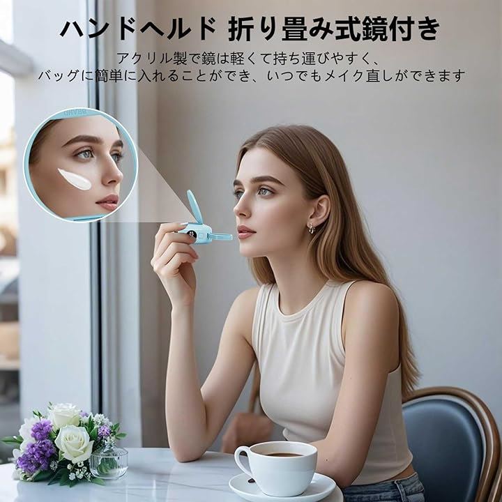 また、折りたたみ式のコンパクト化粧鏡を内蔵し、どんなバッグにもすっぽり入り、いつでも化粧直しに便利。