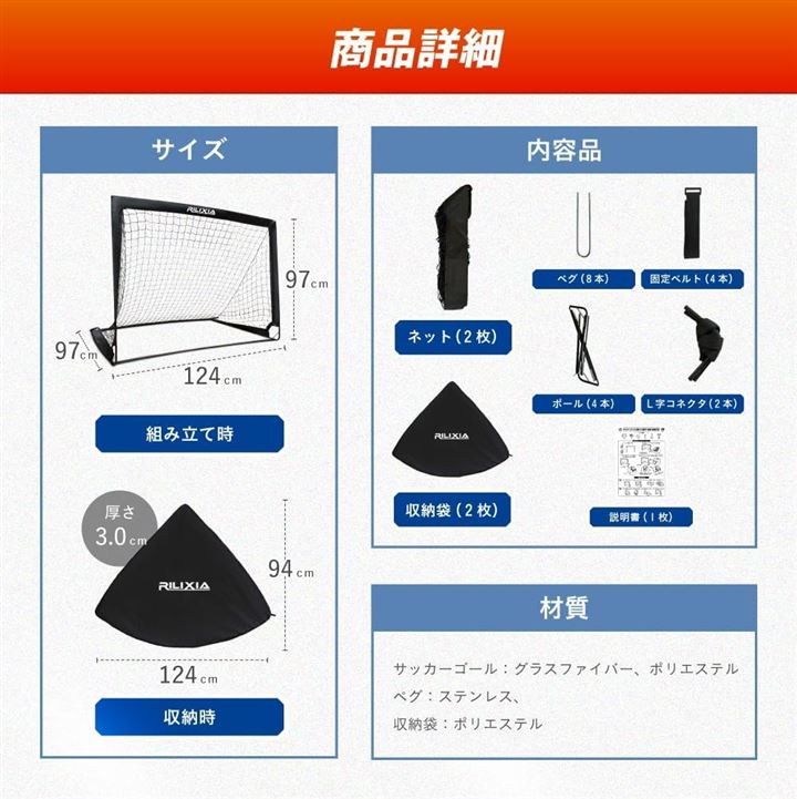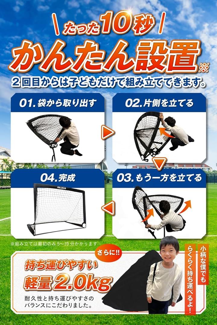 折りたたみサッカーゴール 94cmx127cm 子供向け 収納バッグ付き