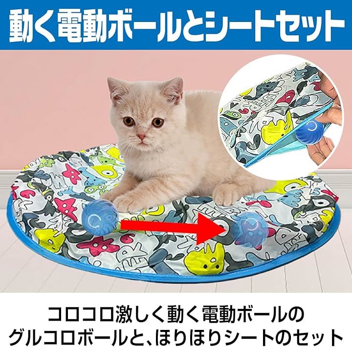 ペット 電動式 ボール シート 猫 犬 おもちゃ 折畳み 自動 動く 猫じゃらし 運動不足解消 ストレス解消 USB充電