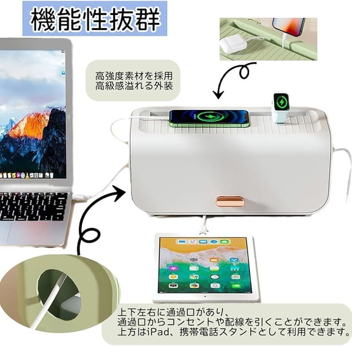 ケーブルボックス ケーブルがまとまる 電源タップ 配線隠し コンセント コード 収納 ボックススリム おしゃれ スマホ置き