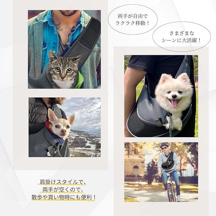 犬 抱っこ紐 ペットスリング 猫 肩掛け お散歩 メッシュ 収納ポケット付き