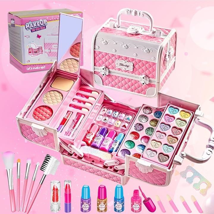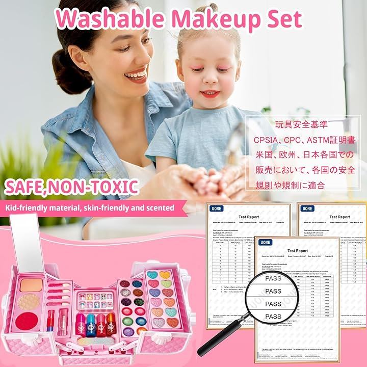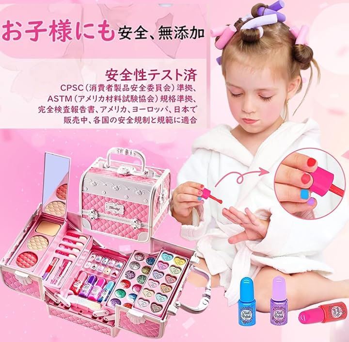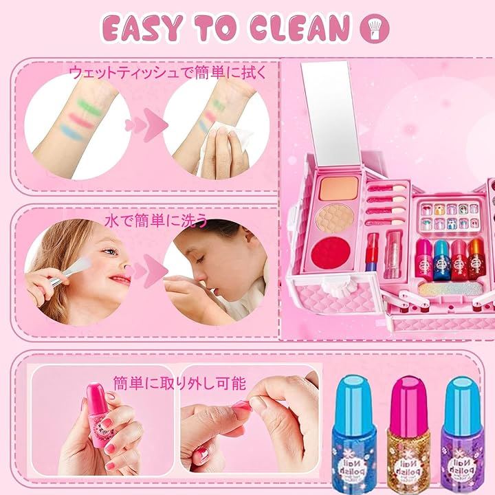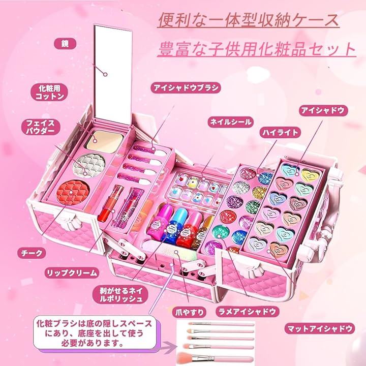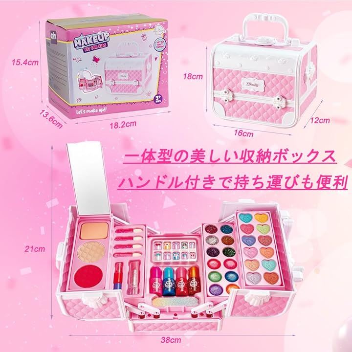 メイクセット 女の子 おもちゃ キッズコスメセット 女の子向けの洗える・無害な子供 化粧セット 子供ドレッサー pink