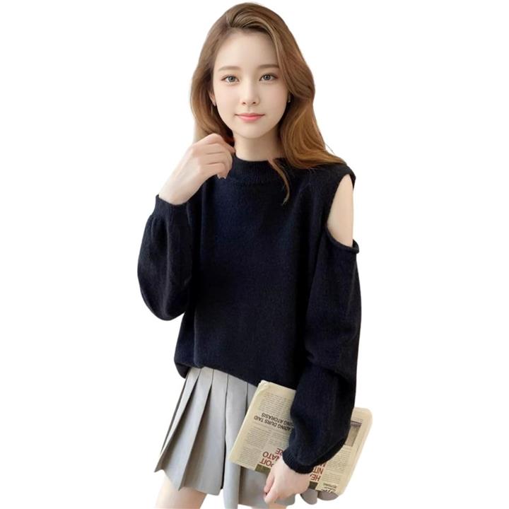 肩出しセーター ショルダーカット 長袖 ラウンドネック ニット ゆるシルエット パフスリーブ ヘルシーコーデ 大人リラクシー レディース |
