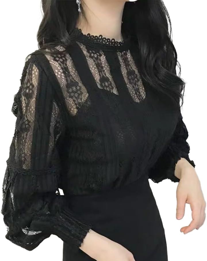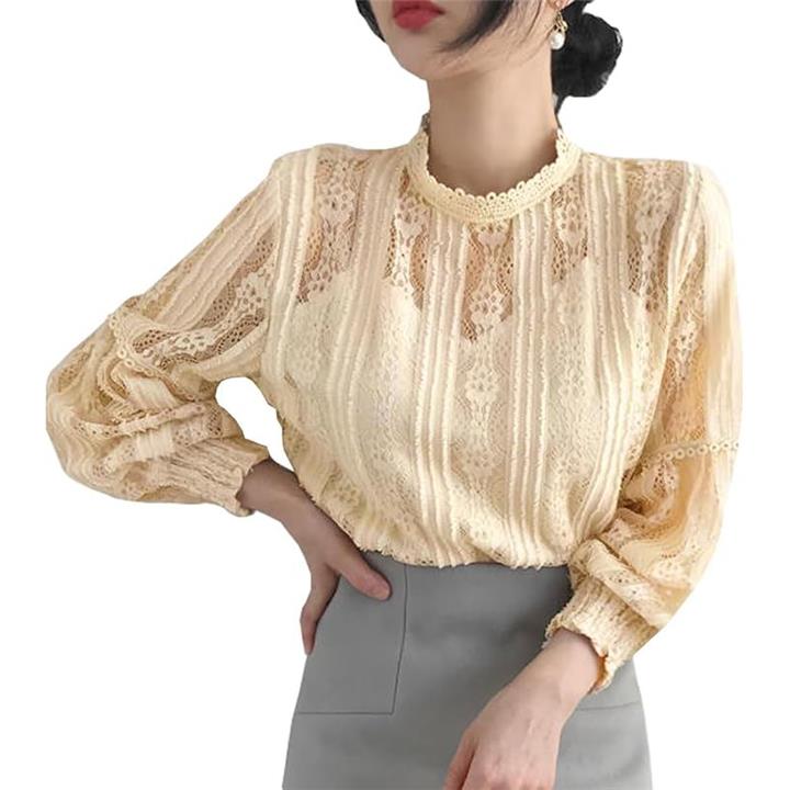 [ウェアビー] レース柄 ブラウス 裏地付き シアー 透け感 かわいい お呼ばれ オケージョン 二次会 結婚式 パーティー おしゃれ レディース 長袖 ロングスリーブ wbl0146 |