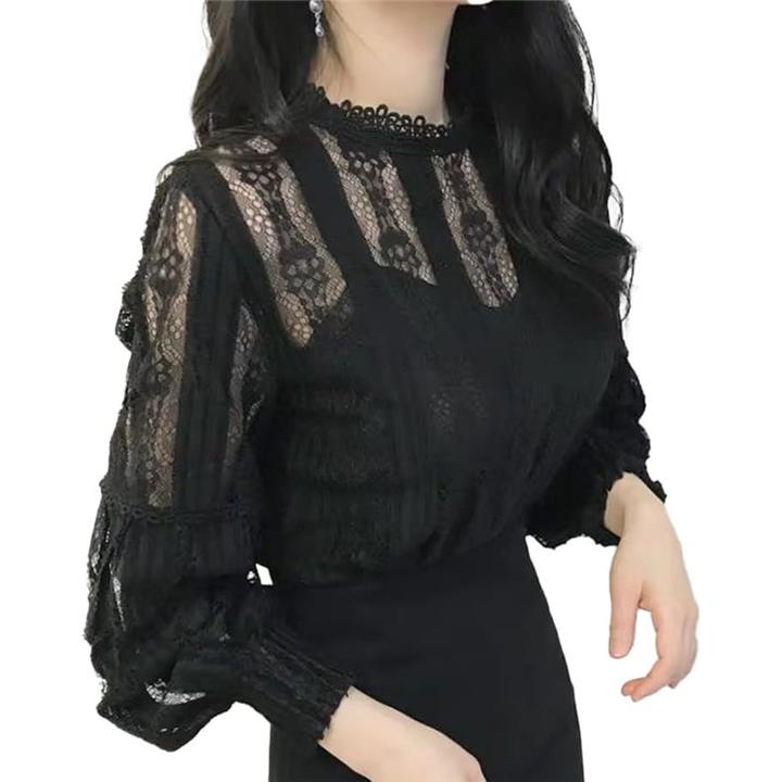 首元にしっくりおさまるバンドカラーレースブラウス。