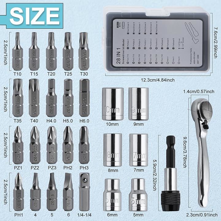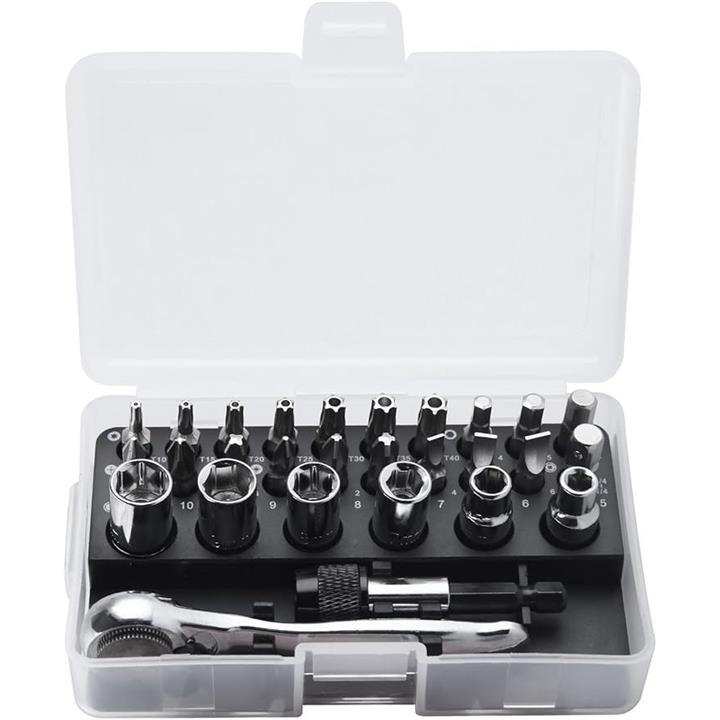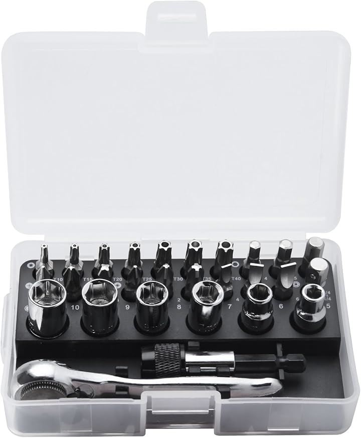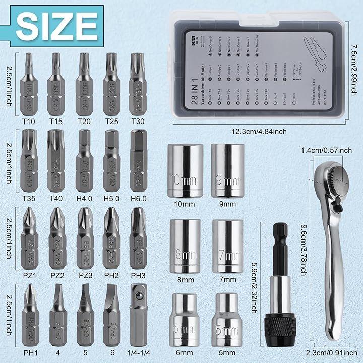 28本セット ラチェットドライバーセット ラチェットレンチセット 1/4 ビット 差込6.35mm ソケットレンチ5/6/7/8/9/10mm 星形 T10/T15/T20/T25/T30/T35/T40 穴付き