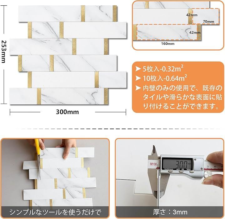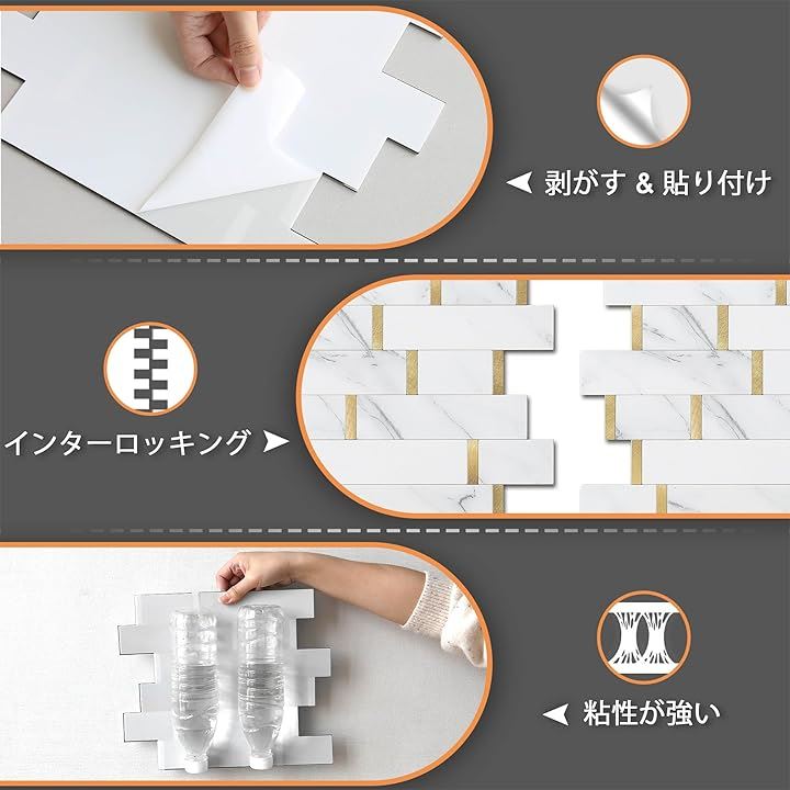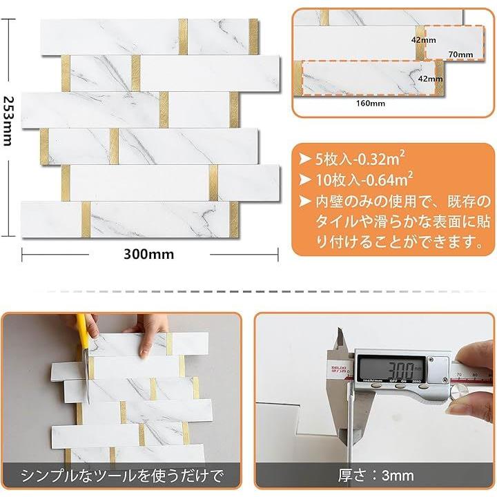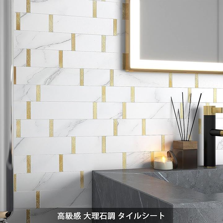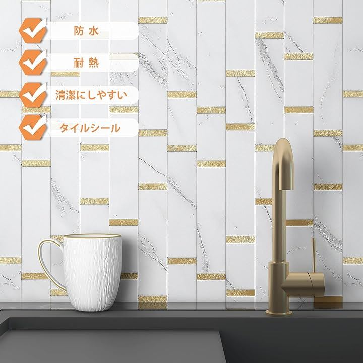 な大理石調タイルシールdiy キッチンパネル 壁の耐熱性と洗面所 5枚