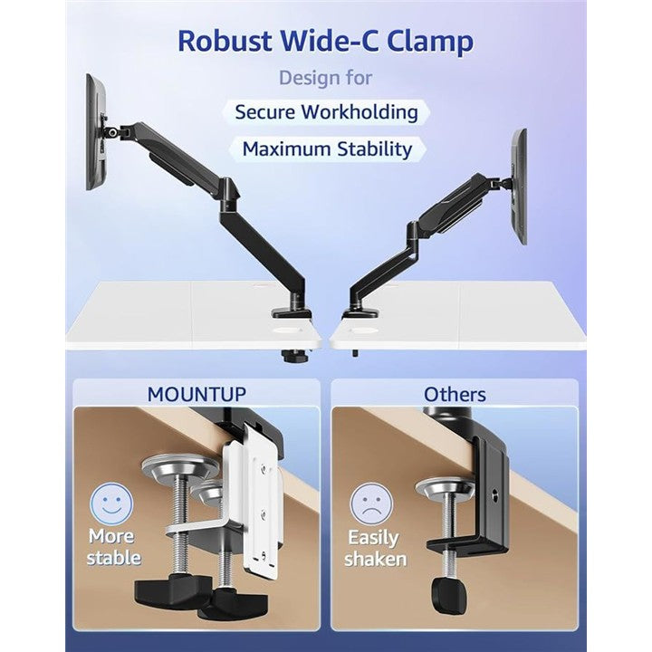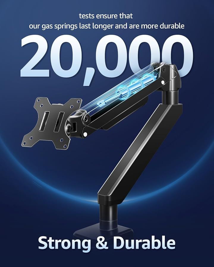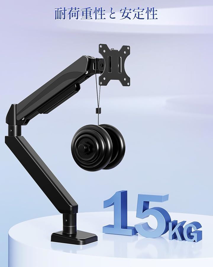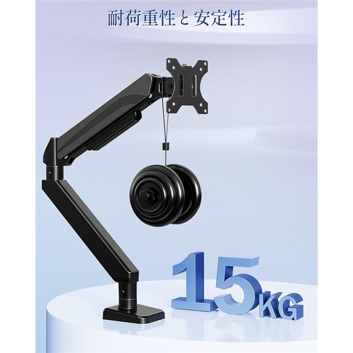 モニターアーム 42インチ対応 ディスプレイ シングルアーム 大型 耐荷重15kg ヘビーデューティー 高さ調整可能 超広角モニター スタンド クランプ式 グロメット式